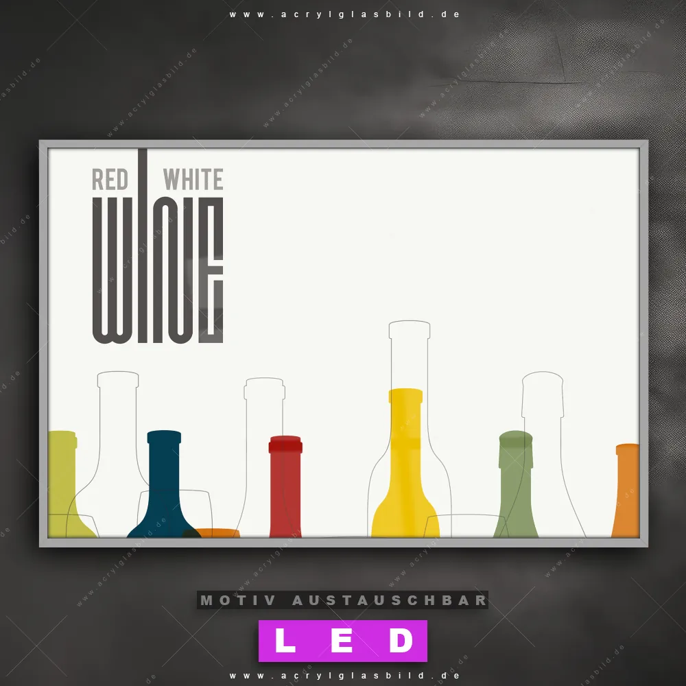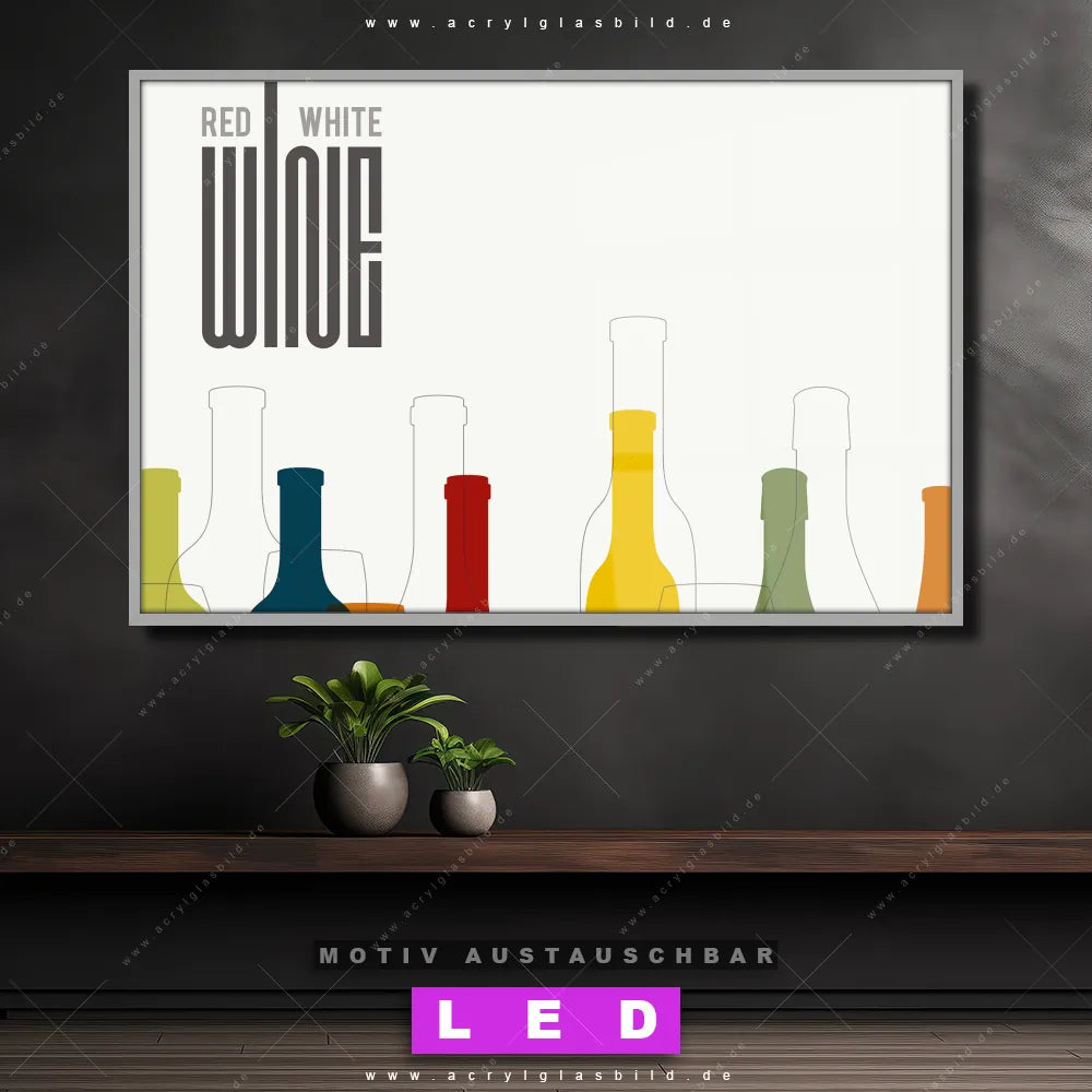 Mit unserem LED Acrylglasbild Canvalight® DIA Weinflaschen und Weingläser und seiner genialen LED-Ausleuchtung wirst du nie wieder im Dunkeln auf deinem Sofa herumtappen. Wenn du nach einem beleuchteten Wandbild aus Acrylglas mit Küche, Wein, Gläser, genießen, Alkohol, Rotwein, Flaschen, modern, Cocktailkirsche, Sekt, Martinigläser, Obst für Küche - Esszimmer, Büro - Kanzlei, Bar - Gastronomie suchst, ist unser LED Leuchtbild Illustration Weinflaschen und Gläser in den beeindruckenden Motiv-Farben Weiss, Blau, Gelb , Grün, Rot genau das richtige beleuchtete Wandbild für dich. Gestaltet im Modern Art Stil, passt dieses LED Wandbild mit DIA-Klapprahmen und glänzender Front aus Acrylglas perfekt zu jedem Einrichtungsstil – sogar zu deinem chaotischen kreativen Durcheinander!