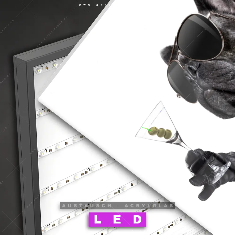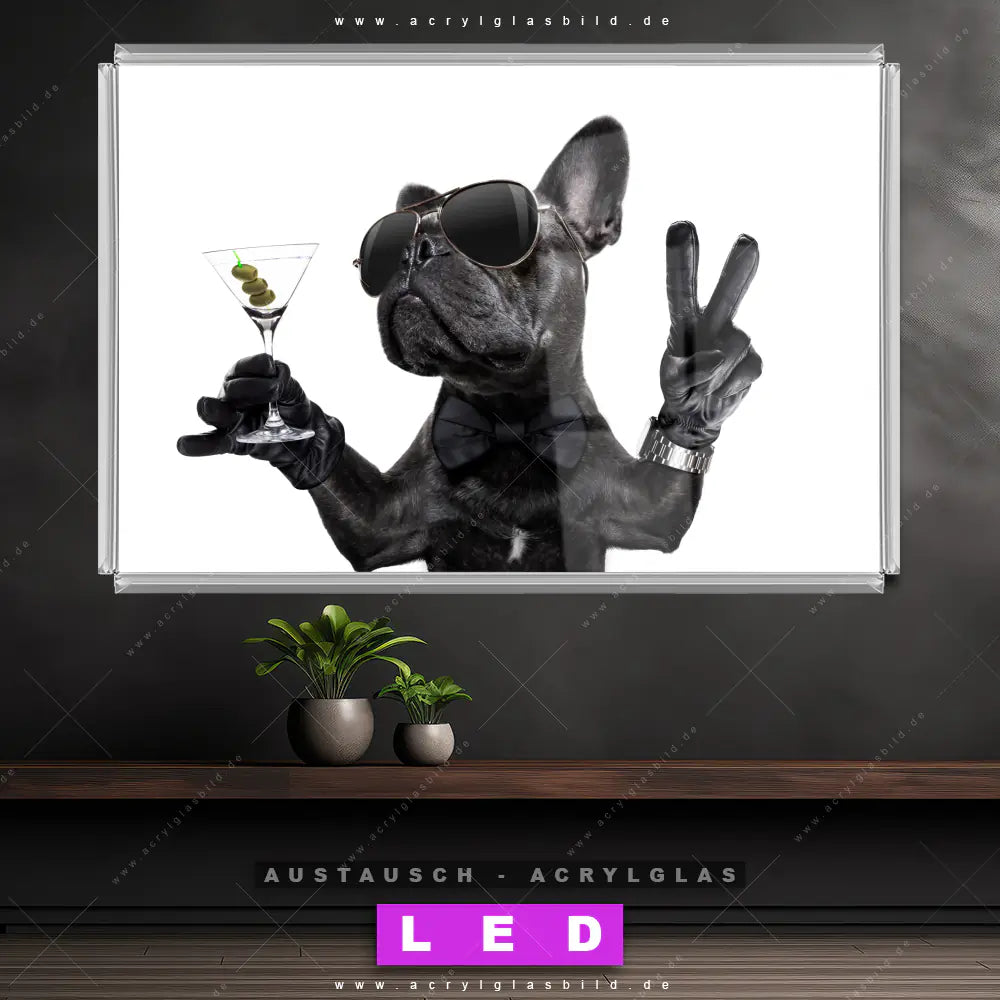Wechsel-Acrylglas Canvalight® DIA | Bulldogge mit Martini | Querformat