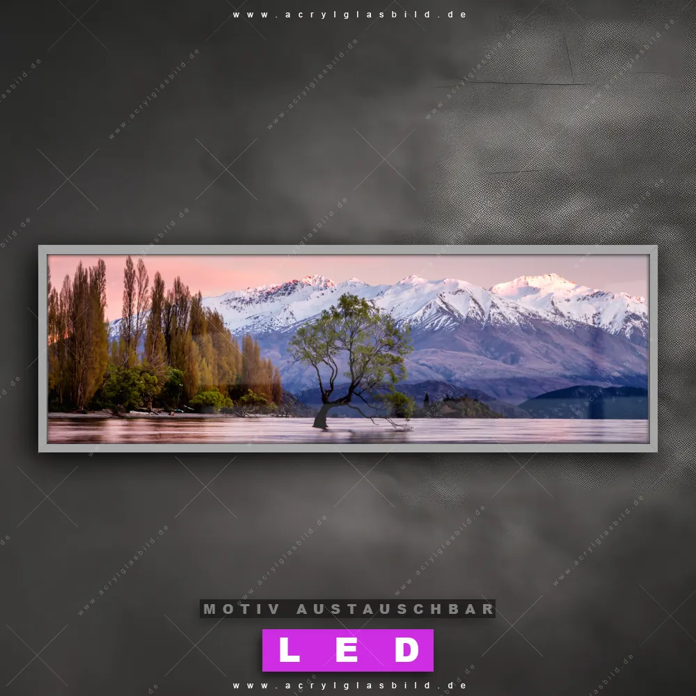 Deine Wände könnten dringend ein dimmbares LED Bild mit Fernbedienung und optionaler Farbtemperatursteuerung gebrauchen? Dann haben wir das perfekte Wandbild mit LED Beleuchtung für dich: unser mega-cooles Landschaften Canvalight® DIA LED Acrylglasbild! Mit unserem angesagten Leuchtbild aus Acrylglas im Panorama-Format und der austauschbaren bedruckten Acrylglas-Scheibe Neuseeland am Morgen bringst du nicht nur Licht, sondern auch jede Menge Flair in deine Räume.