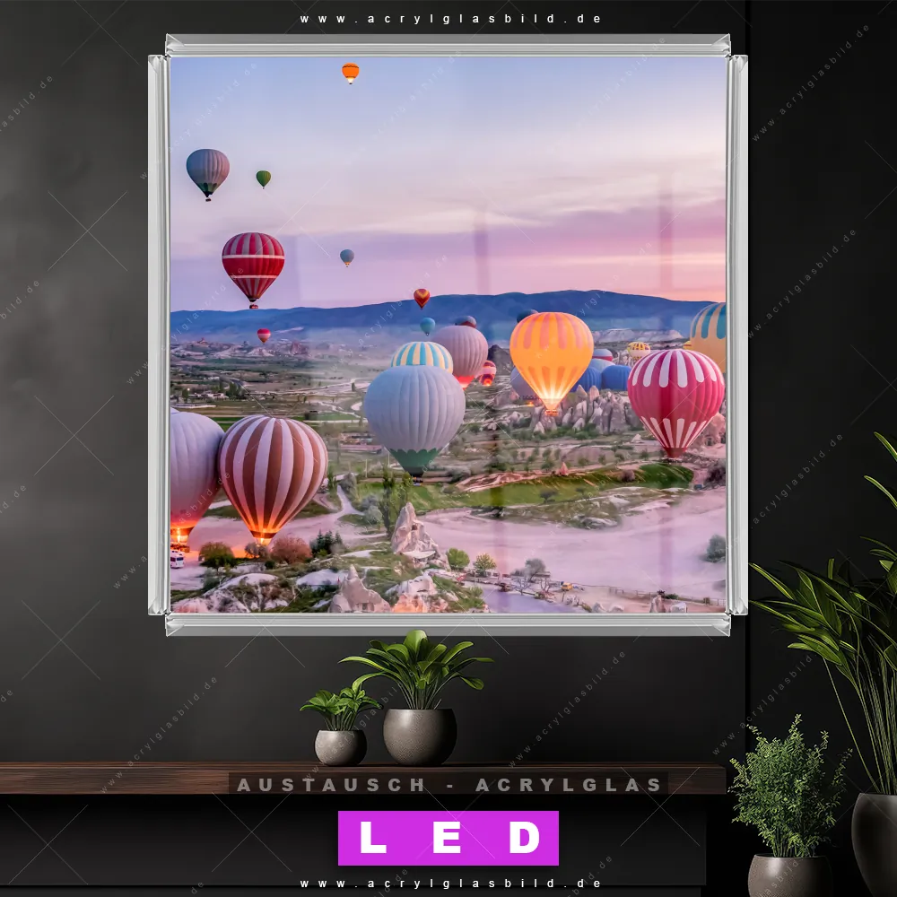 Wechsel-Acrylglas Canvalight® DIA | Heißluftballons im Sonnenuntergang | Quadrat