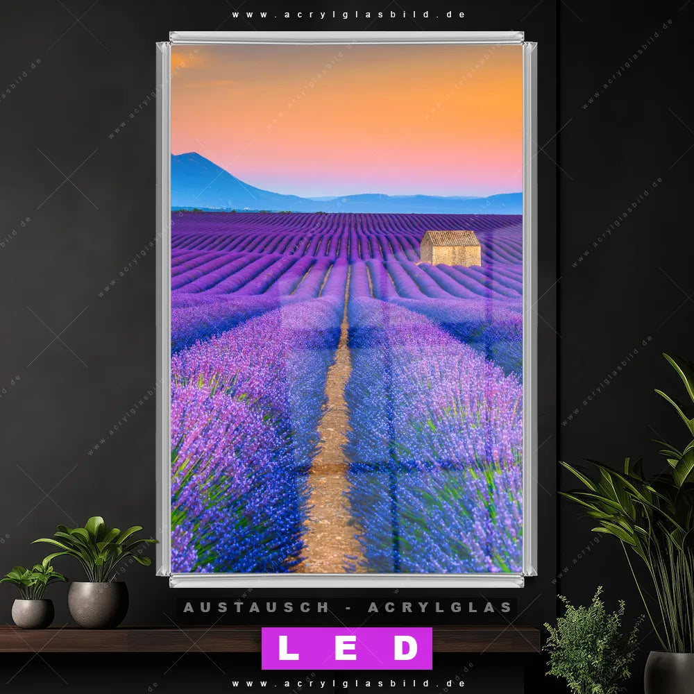 Wechsel-Acrylglas Canvalight® DIA | Lavendel Blumen Feld | Hochformat