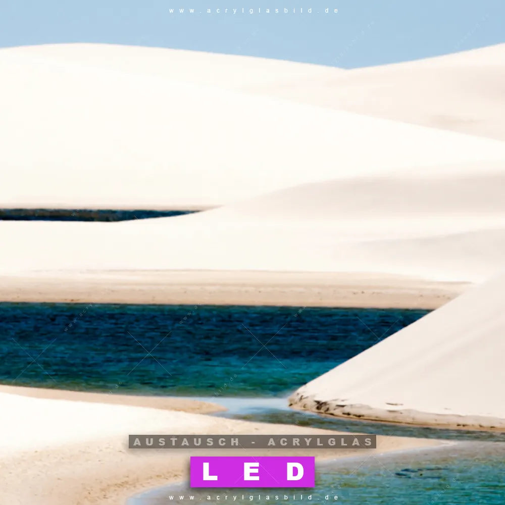 Begriffe wie See, Himmel, Natur, Dünen, Oase, Wasser, Wüste, Berge haben dich auf der Suche nach deinem neuen Austausch-Acrylglasbild inspiriert? Dann sollte das Wechsel-Acrylglasbild Dünenlandschaft mit See für dein bereits vorhandenes LED Acrylglasbild Canvalight® DIA den Weg zu dir finden.