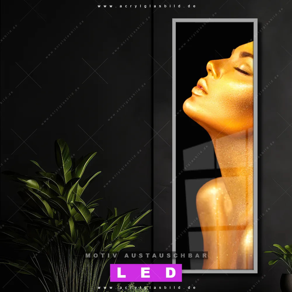 Vergiss dunkle Ecken und langweilige Wände in Friseur - Beauty, Flur - Eingangsbereich, Wohnzimmer - Schlafzimmer! Mit unserem LED Acrylglasbild Canvalight® DIA Goldfrau wirst du nie wieder im Dunkeln tappen. Suchst du nach einem beleuchteten Wandbild mit Frau, Porträt, Erotik, modern, Gold, Farbe, Beauty, Haar, Gesicht, Körper? Dann ist unser Leuchtbild Frau mit goldigem Haar mit den strahlenden Motiv-Farben Gold, Schwarz genau das richtige LED Bild für dich. Egal, ob dein Stil minimalistisch oder exotisch ist, dieses LED Leuchtbild im Modern Art Stil mit DIA-Klapprahmen und glänzender Front aus Acrylglas passt perfekt zu jeder Einrichtung.