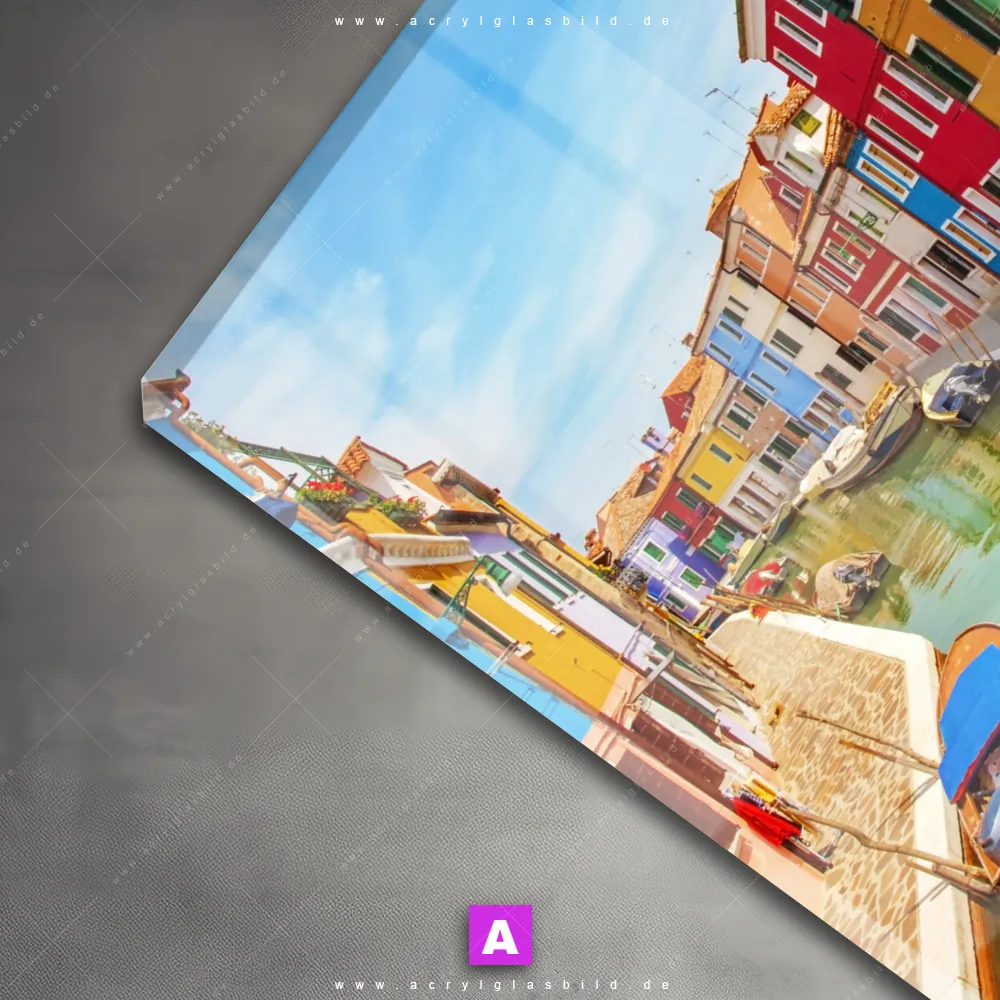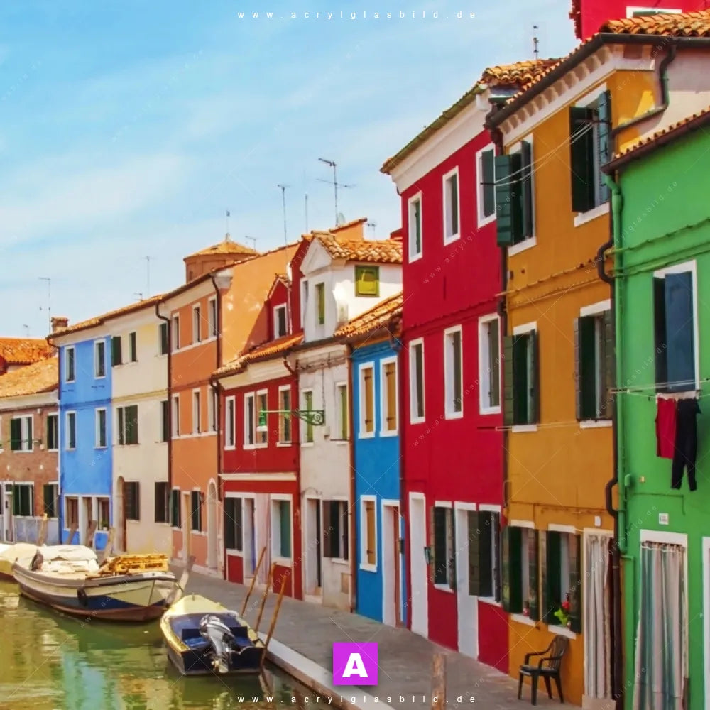 Das Acrylglasbild Wasserstraßen Venedig ist ein absolutes Must-Have, wenn du nach einem Wandbild in der Kategorie Architektur - Gebäude, Städte - Skylines suchst, das deine Persönlichkeit widerspiegelt. Die Farben in Bunt und die außergewöhnlichen Details wie Stadt, Skyline, Himmel, Hafenstadt, Fluss, Venedig, Burano, Boote, bunte Häuser machen das Acrylglasbild Boote in Venedig einzigartig und verleihen jedem Raum, sei es Wohnzimmer, Schlafzimmer oder sogar das Gäste-WC, den Wow-Faktor, den er verdient.