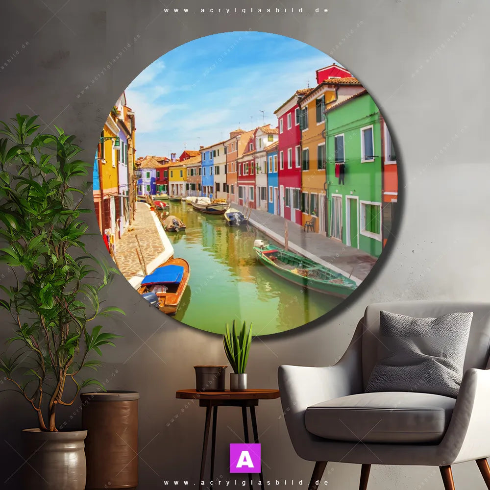 Hey du! Bist du es auch leid, auf langweilige, weiße Wände in deinem Raum zu starren und dich zu fragen, ob das der Sinn des Lebens ist? Unser Acrylglasbild mit dem Titel Straßen von Venedig im Format Rund verwandelt deine Wand in ein Kunstwerk und macht deinen Raum zum absoluten Hingucker.