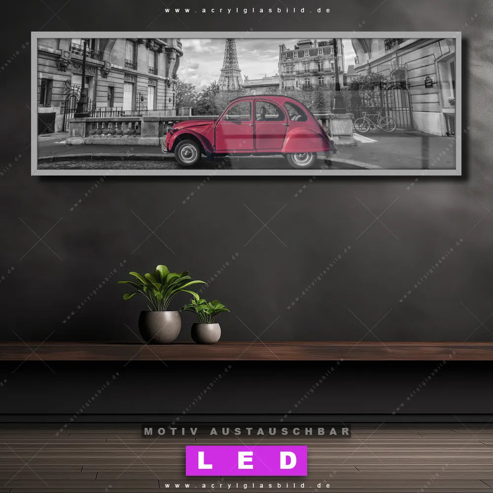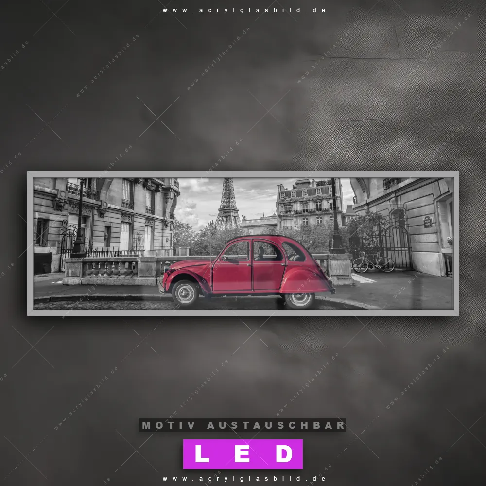 Also, worauf wartest du noch? Verwandle deine Wände mit einem LED Leuchtbild in wahre Kunstwerke und bestelle jetzt das Canvalight® DIA LED Acrylglasbild Klassiker-Auto parkt in Paris. Deine Wände werden strahlen, und deine Freunde werden dank der wechselbaren Motive staunen!