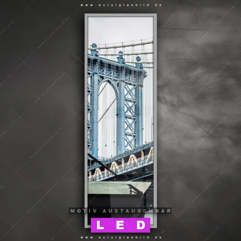Vergiss dunkle Ecken und langweilige Wände in Arzt - Praxis, Bar - Gastronomie, Büro - Kanzlei, Wohnzimmer - Schlafzimmer! Mit unserem LED Acrylglasbild Canvalight® DIA Brücke in Manhatten wirst du nie wieder im Dunkeln tappen. Suchst du nach einem beleuchteten Wandbild mit Brücke, New York City, Skyline, Manhatten, Amerika, New York, USA? Dann ist unser Leuchtbild Brücke in New York City mit den strahlenden Motiv-Farben Braun, Beige, Blau, Hellblau, Ocker, Rot genau das richtige LED Bild für dich. Egal, ob dein Stil minimalistisch oder exotisch ist, dieses LED Leuchtbild im Natürlich - Realistisch, Modern Art Stil mit DIA-Klapprahmen und glänzender Front aus Acrylglas passt perfekt zu jeder Einrichtung.