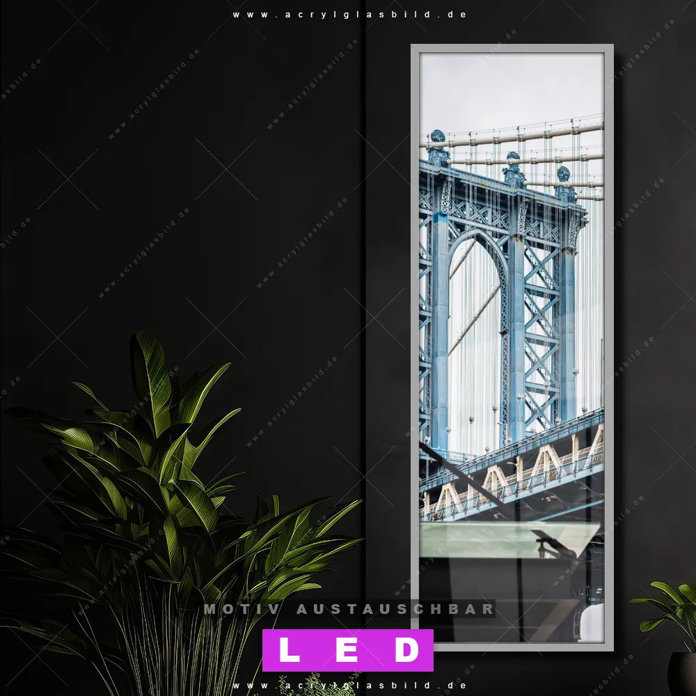 Bist du bereit, deine Wände mit einem dimmbaren LED Bild mit Fernbedienung und optionaler Farbtemperatursteuerung auf das nächste Level zu bringen? Unser Architektur - Gebäude, Städte - Skylines Canvalight® DIA LED Acrylglasbild ist genau das, was du brauchst! Das Wandbild mit LED Beleuchtung im Schmalen Format mit austauschbarer bedruckter Acrylglas-Scheibe Manhattan bringt Licht und Stil in dein Zuhause – und das in null Komma nichts!