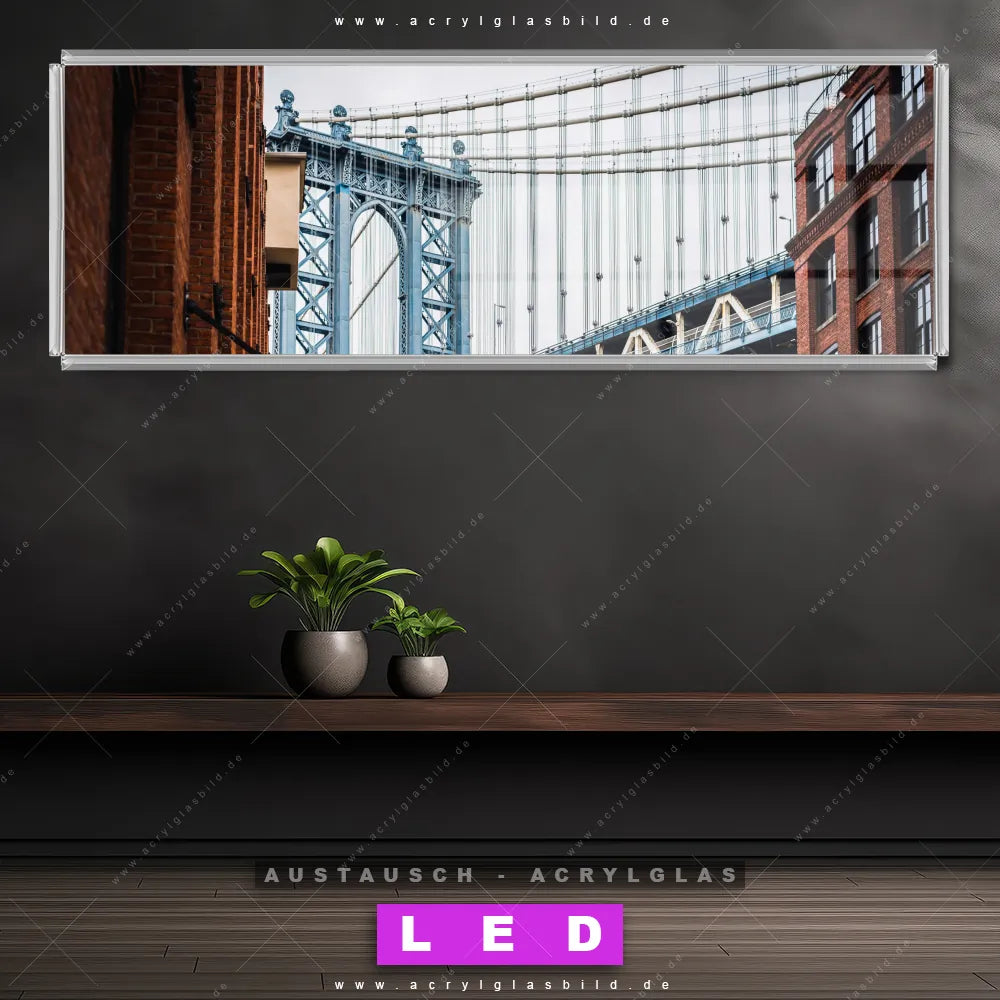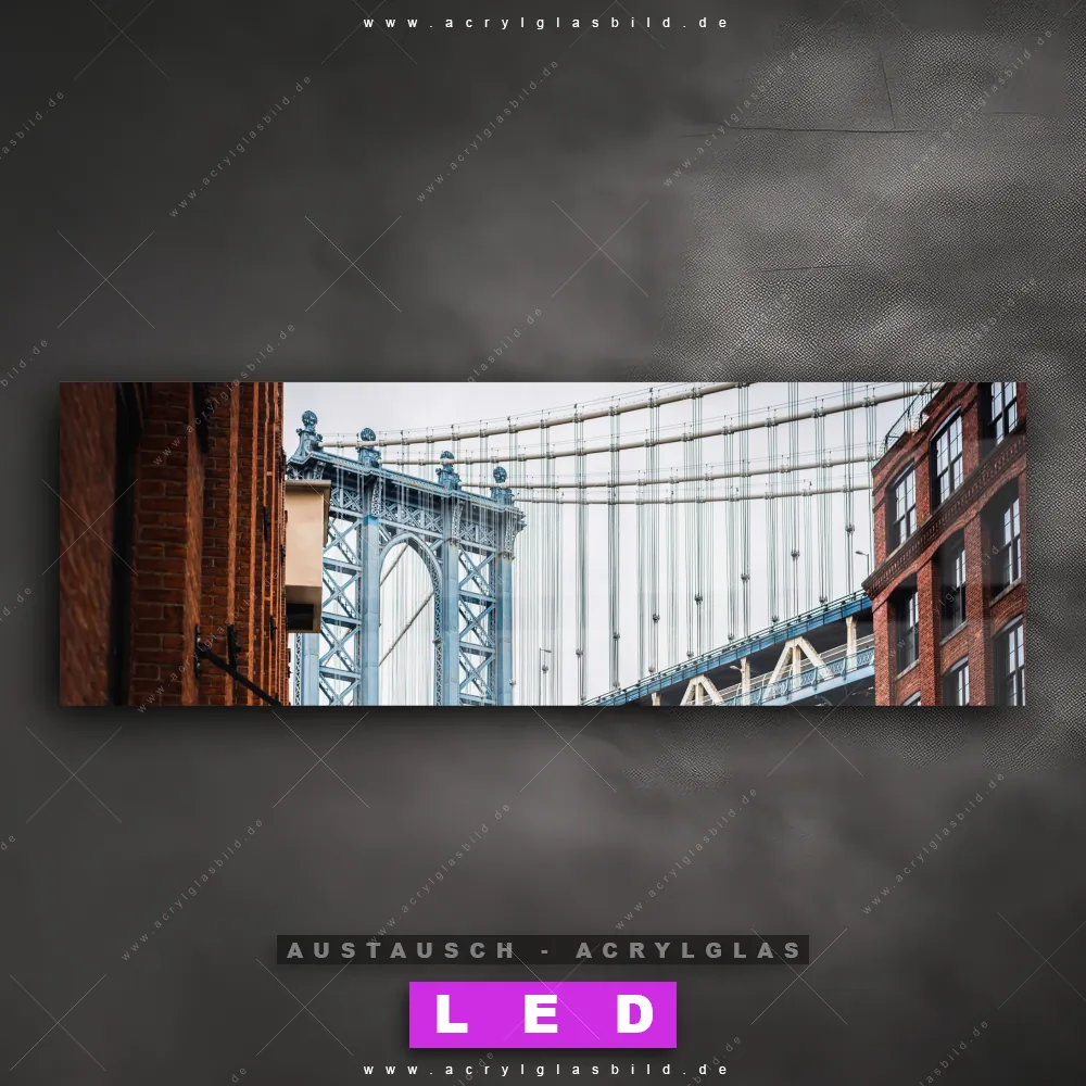 Begriffe wie Brücke, New York City, Skyline, Manhatten, Amerika, New York, USA haben dich auf der Suche nach deinem neuen Austausch-Acrylglasbild inspiriert? Dann sollte das Wechsel-Acrylglasbild Brücke in Manhatten für dein bereits vorhandenes LED Acrylglasbild Canvalight® DIA den Weg zu dir finden.