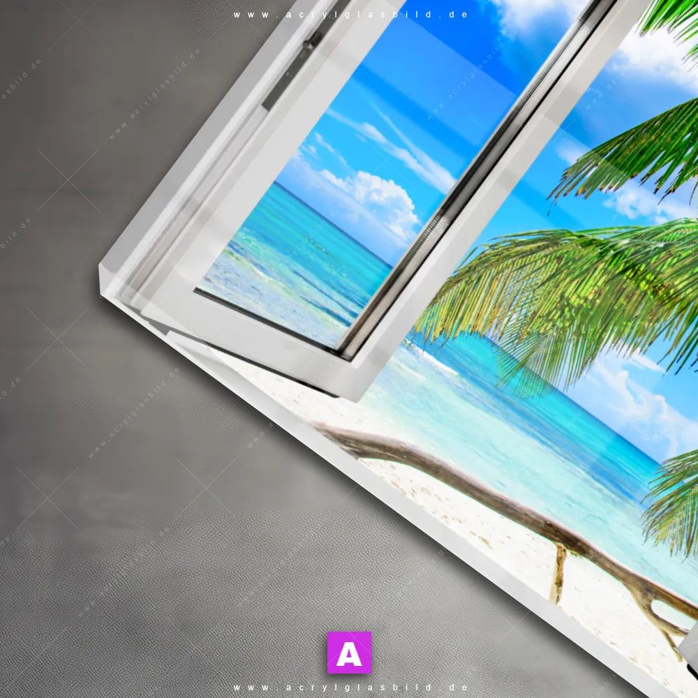 Also, zögere nicht länger und verleih deinen vier Wänden Farbe und Leben. Bestelle jetzt das Acrylglasbild offenes Fenster auf karibischen Strand