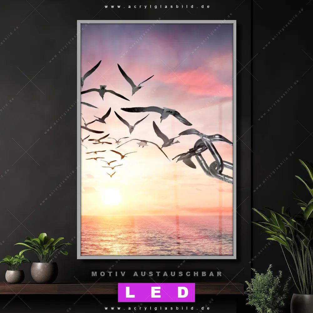 Du suchst nach einem Wandbild mit LED Beleuchtung als ultimativen Hingucker für deine Wände? Dann haben wir das perfekte dimmbare LED Bild mit Fernbedienung und optionaler Farbtemperatursteuerung für dich: unser abgefahrenes Landschaften, Strand - Meer, Tierwelt Canvalight® DIA LED Acrylglasbild! Mit dem LED Leuchtbild aus Acrylglas Flügel der Freiheit im Hochformat mit austauschbarer bedruckter Acrylglas-Scheibe bringst du nicht nur Licht, sondern auch ordentlich Stil in deine Bude.