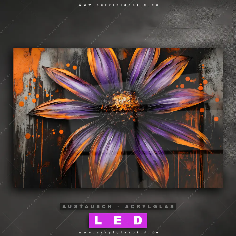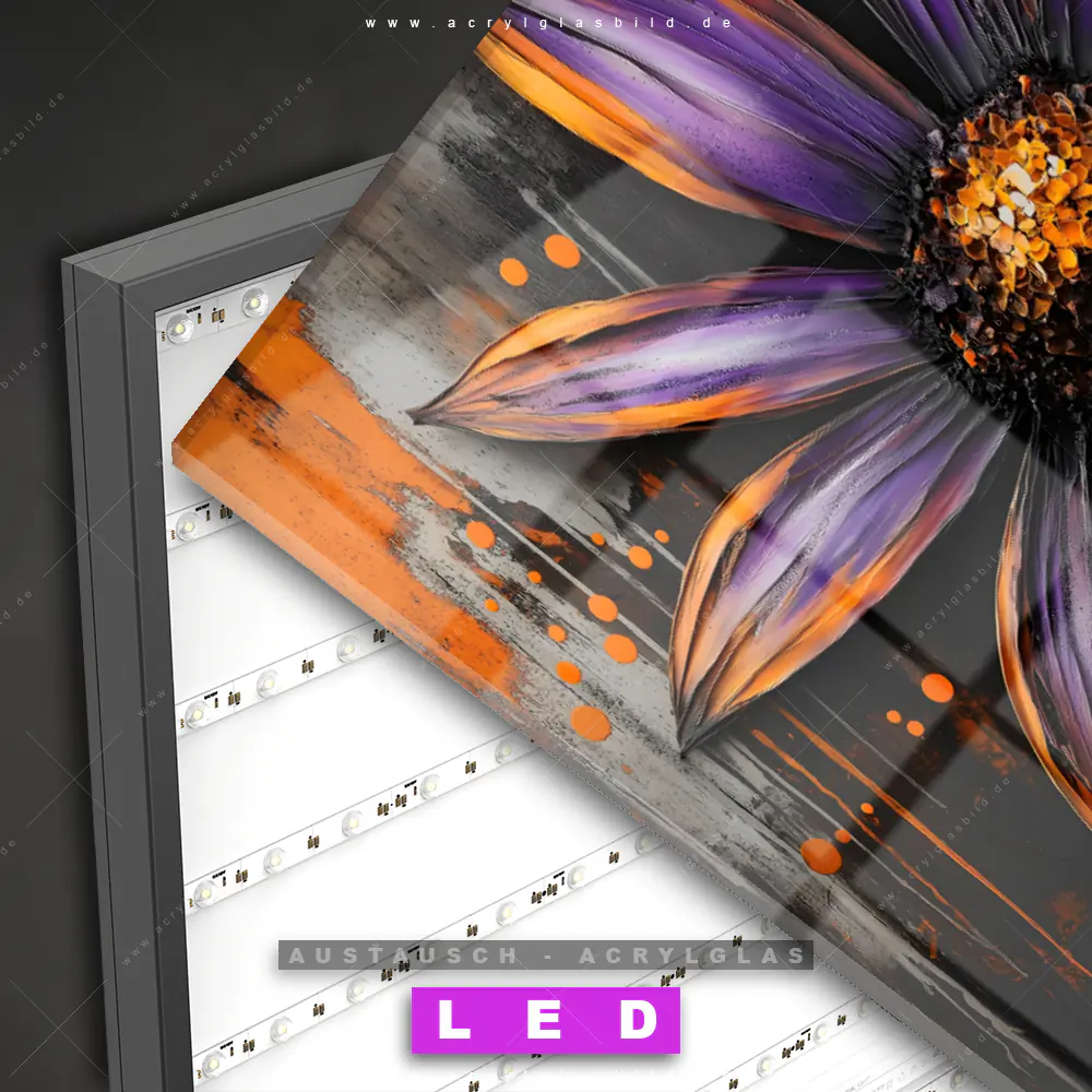 Wechsel-Acrylglas Canvalight® DIA | Abstrakte Blume in Orange & Lila | Querformat