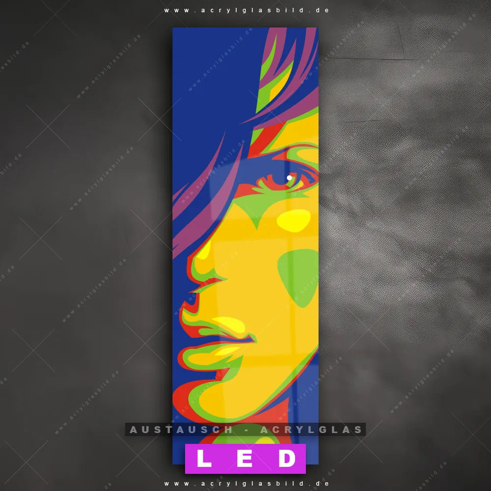 Begriffe wie Abstrakt, Modern, Kunst, Frau, Portrait, Gesicht, Kopf, Mädchen, Augen, Haare, Lippen haben dich auf der Suche nach deinem neuen Austausch-Acrylglasbild inspiriert? Dann sollte das Wechsel-Acrylglasbild Frauengesicht abstrakt für dein bereits vorhandenes LED Acrylglasbild Canvalight® DIA den Weg zu dir finden.