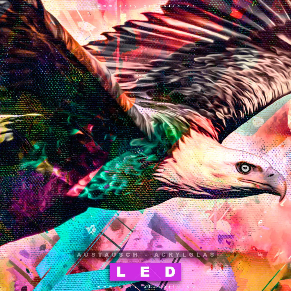 Begriffe wie Vogel, Adler, Wald, Eagle, Farbexplosion, Farbspritzer, Farbe haben dich auf der Suche nach deinem neuen Austausch-Acrylglasbild inspiriert? Dann sollte das Wechsel-Acrylglasbild abstrakter Geier für dein bereits vorhandenes LED Acrylglasbild Canvalight® DIA den Weg zu dir finden.