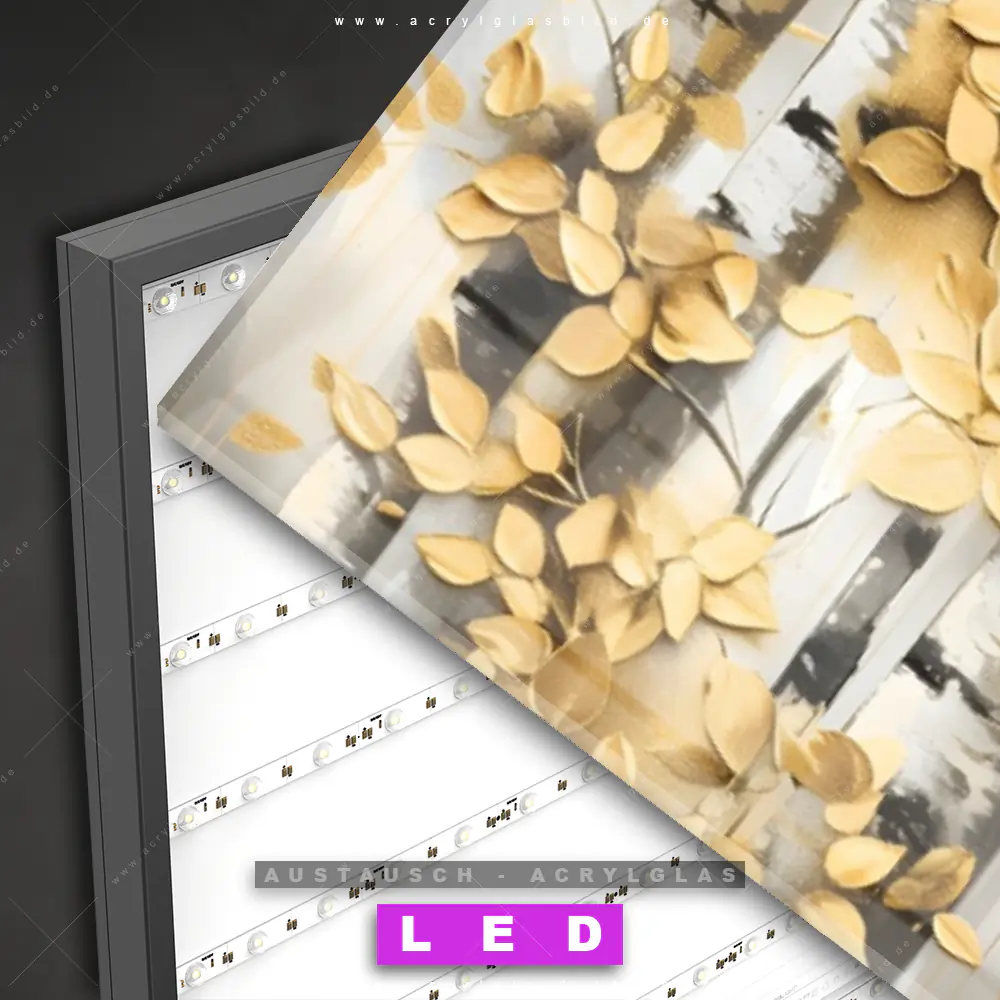 Begriffe wie Wald, Landschaft, Bäume, Natur, Birken, Birkenwald, Blätter haben dich auf der Suche nach deinem neuen Austausch-Acrylglasbild inspiriert? Dann sollte das Wechsel-Acrylglasbild Herbstzauber - Birkenwald für dein bereits vorhandenes LED Acrylglasbild Canvalight® DIA den Weg zu dir finden.