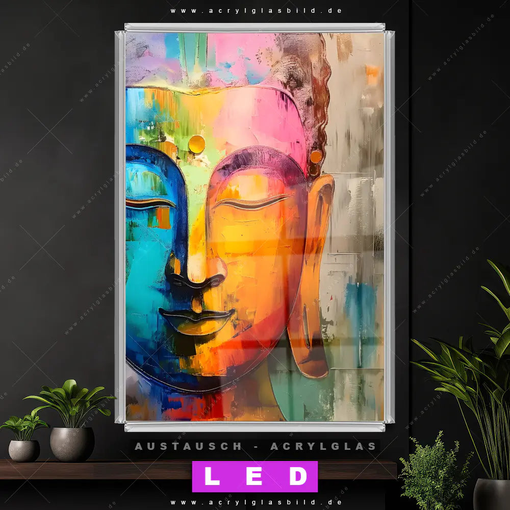Begriffe wie Buddha, Buddhismus, Religion, Feng Shui, Zen, Meditation, Gemälde, Gesicht, Kopf, Porträt haben dich auf der Suche nach deinem neuen Austausch-Acrylglasbild inspiriert? Dann sollte das Wechsel-Acrylglasbild Spirituelles Buddha-Porträt für dein bereits vorhandenes LED Acrylglasbild Canvalight® DIA den Weg zu dir finden.