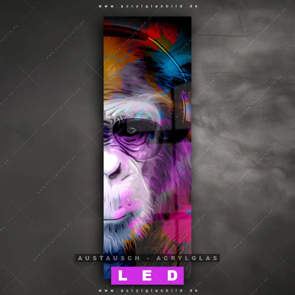 Begriffe wie Tier, Affe, Monkey, Brille, Sonnenbrille, cool, Chimpanzee, Schimpanse, Kopfhörer, Musik haben dich auf der Suche nach deinem neuen Austausch-Acrylglasbild inspiriert? Dann sollte das Wechsel-Acrylglasbild Affe hört Musik für dein bereits vorhandenes LED Acrylglasbild Canvalight® DIA den Weg zu dir finden.