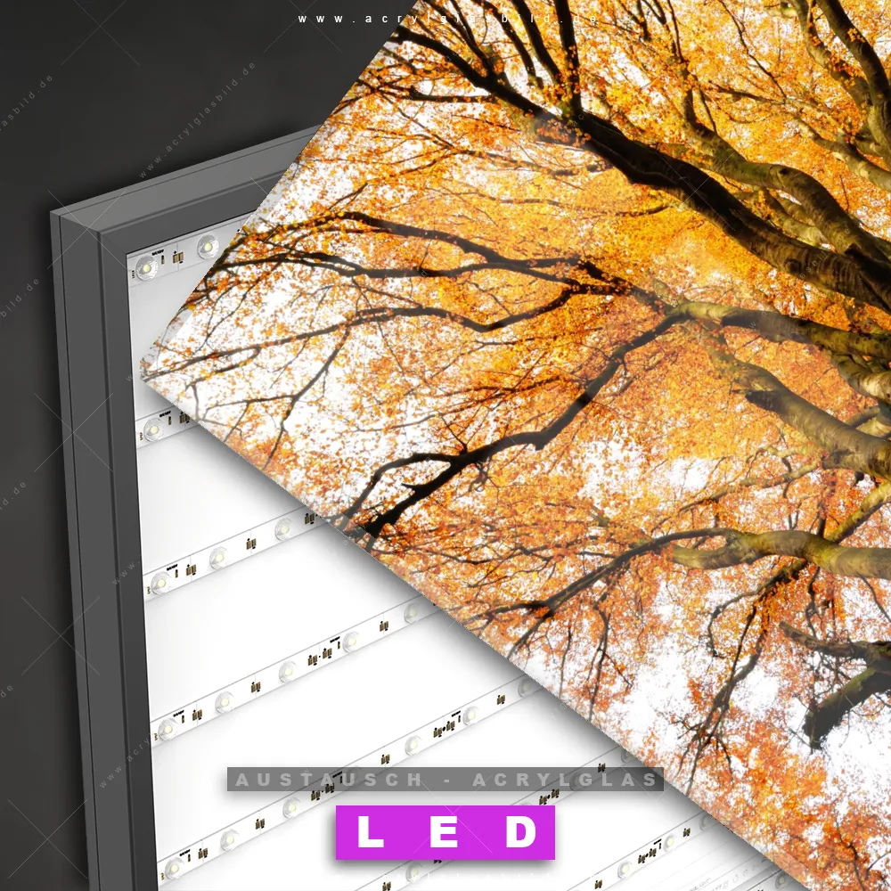 Begriffe wie Wald, Landschaft, Bäume, Natur, Baum, Buche, Ruhe, Stille, Baumkrone, Baumstamm, Herbst haben dich auf der Suche nach deinem neuen Austausch-Acrylglasbild inspiriert? Dann sollte das Wechsel-Acrylglasbild Großer alter Baum für dein bereits vorhandenes LED Acrylglasbild Canvalight® DIA den Weg zu dir finden.