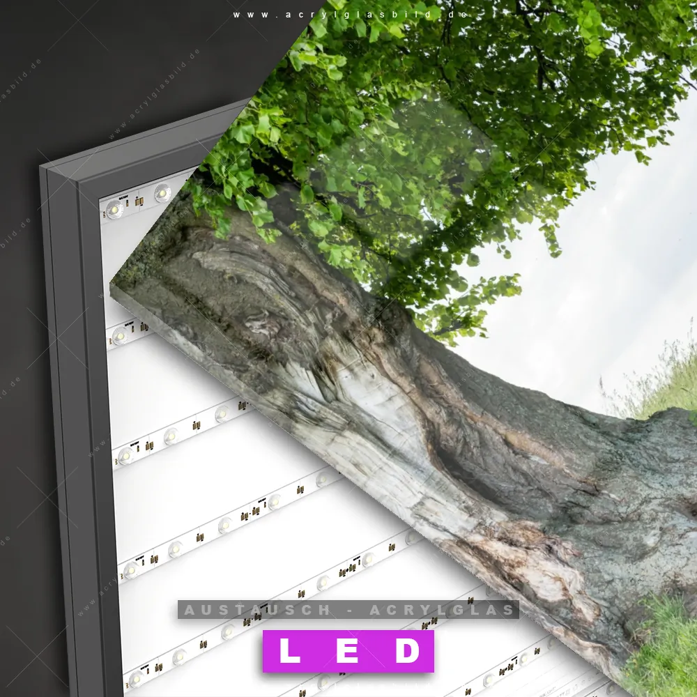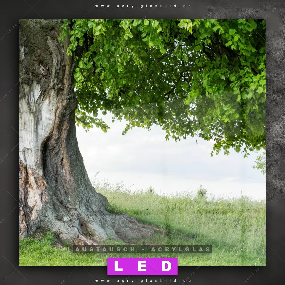 Begriffe wie Natur, Baum, Ruhe, Stille, Baumkrone, Laubbaum, Buche, Eiche, Linde, Baumstamm, Wiese, Feld haben dich auf der Suche nach deinem neuen Austausch-Acrylglasbild inspiriert? Dann sollte das Wechsel-Acrylglasbild Großer Laubbaum für dein bereits vorhandenes LED Acrylglasbild Canvalight® DIA den Weg zu dir finden.
