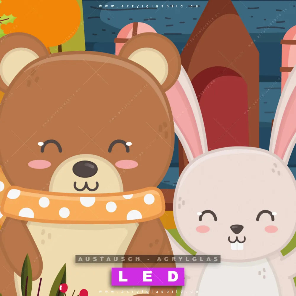 Begriffe wie Kinder, Bär, Hase, Tiere, Buch, Bücher, Aquarell, Kunst, Freunde, Geschichte, vorlesen haben dich auf der Suche nach deinem neuen Austausch-Acrylglasbild inspiriert? Dann sollte das Wechsel-Acrylglasbild Bär und Häschen im Herbstwald für dein bereits vorhandenes LED Acrylglasbild Canvalight® DIA den Weg zu dir finden.