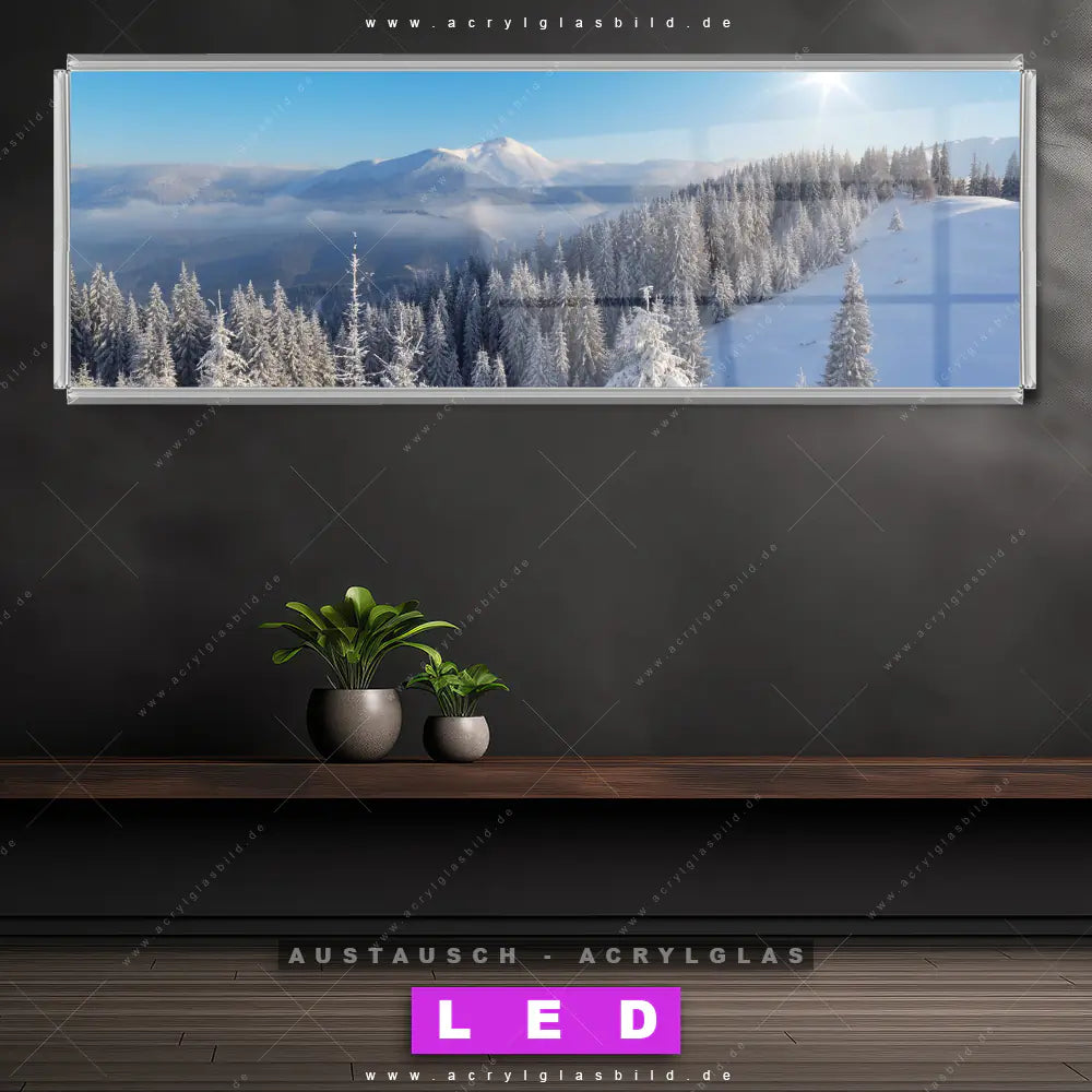 Wechsel-Acrylglas Canvalight® DIA | Berge und Wälder in Schnee | Panorama