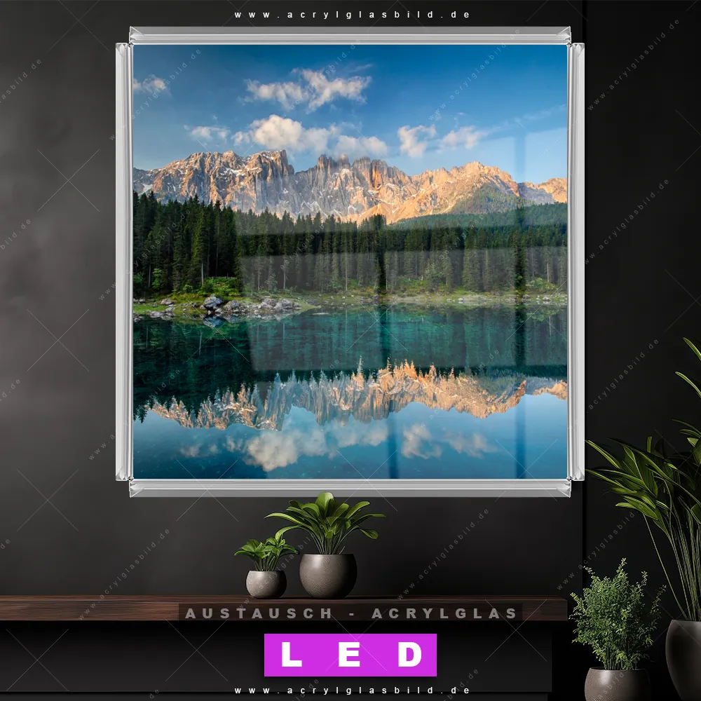 Wechsel-Acrylglas Canvalight® DIA | Bergsee im Wald | Quadrat