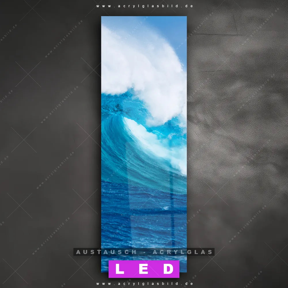 Begriffe wie Ozean, Wasser, Kraft, Sommer, Südsee - Karibik, Urlaub - Reisen, Wellen -Surfen haben dich auf der Suche nach deinem neuen Austausch-Acrylglasbild inspiriert? Dann sollte das Wechsel-Acrylglasbild Blaue Meereswelle für dein bereits vorhandenes LED Acrylglasbild Canvalight® DIA den Weg zu dir finden.
