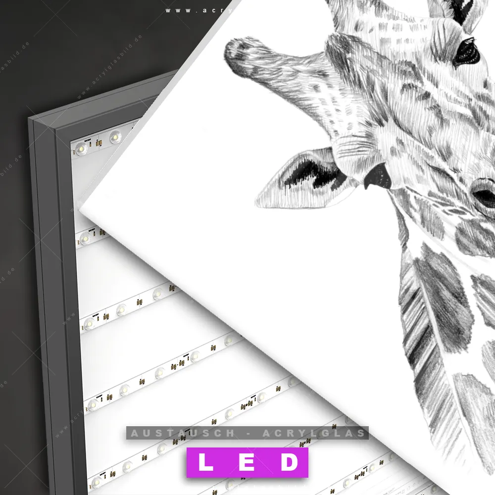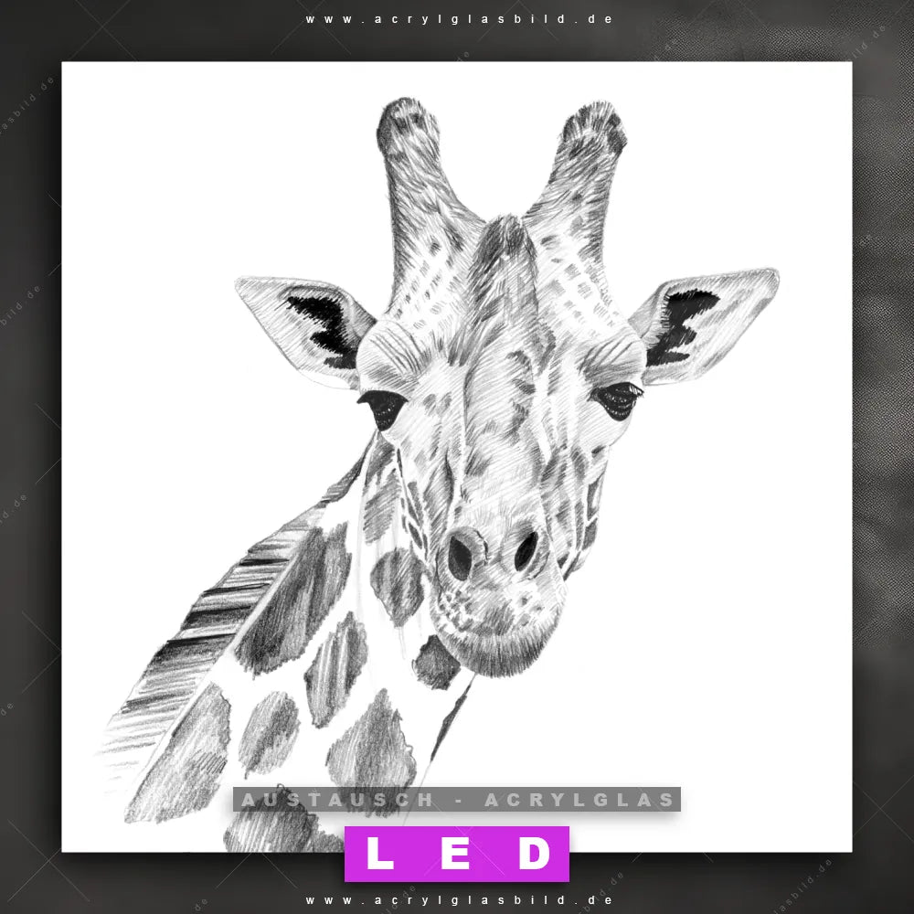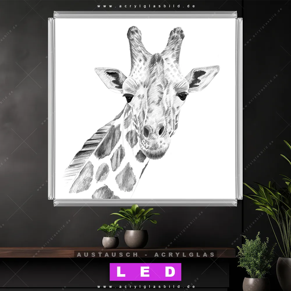 Wechsel-Acrylglas Canvalight® DIA | Bleistiftzeichnung Giraffe | Quadrat