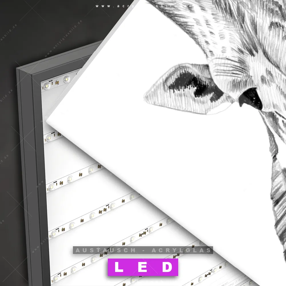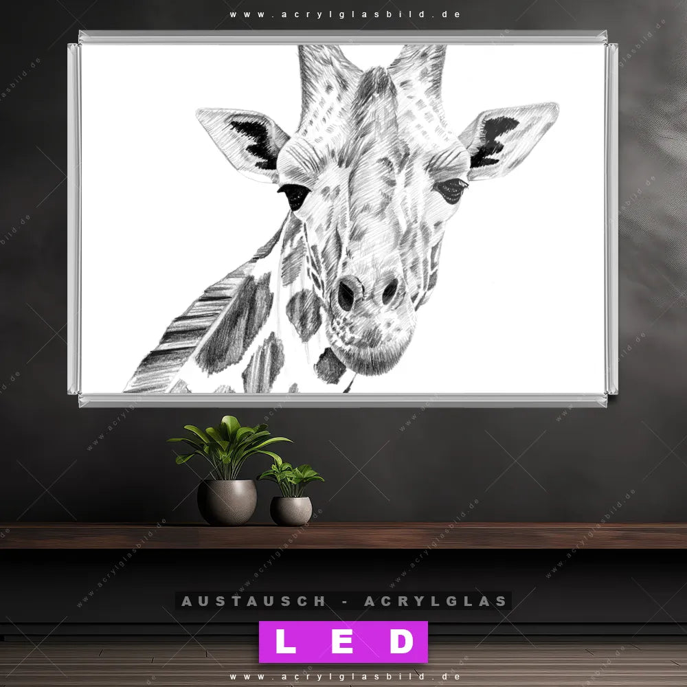 Wechsel-Acrylglas Canvalight® DIA | Bleistiftzeichnung Giraffe | Querformat
