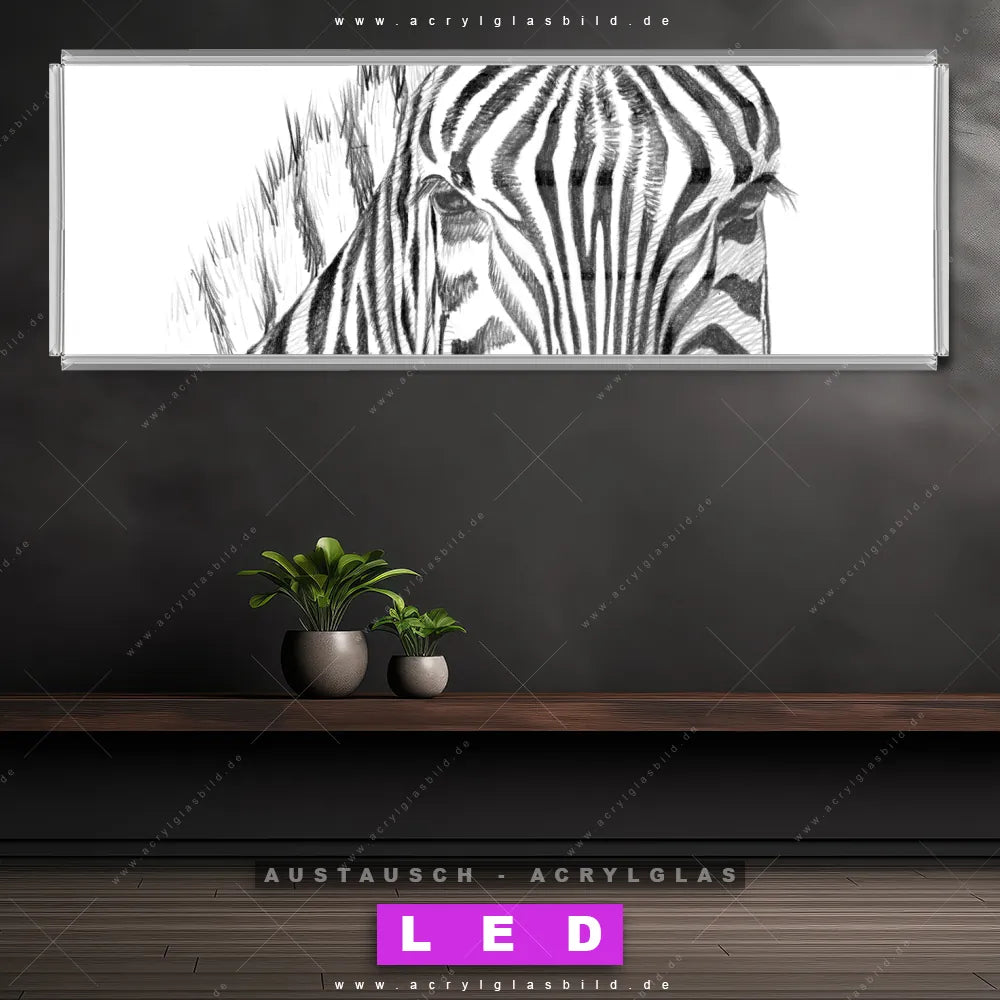 Wechsel-Acrylglas Canvalight® DIA | Bleistiftzeichnung Zebra | Panorama