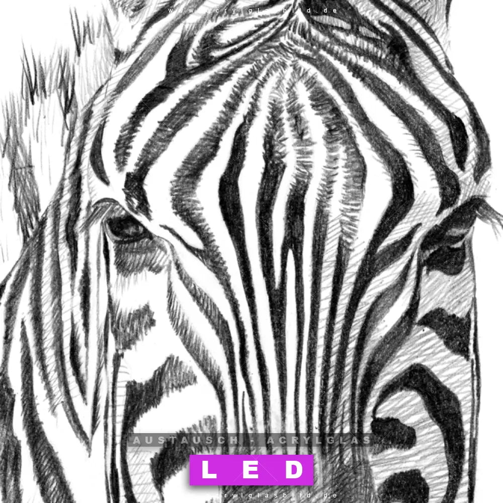 Begriffe wie Zebra, Afrika, Schwarzweiß, Zeichnung, Bleistift, Schwarz, Weiß haben dich auf der Suche nach deinem neuen Austausch-Acrylglasbild inspiriert? Dann sollte das Wechsel-Acrylglasbild Kopf eines Zebras für dein bereits vorhandenes LED Acrylglasbild Canvalight® DIA den Weg zu dir finden.