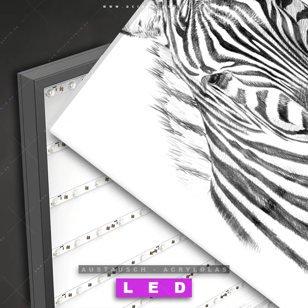 Wechsel-Acrylglas Canvalight® DIA | Bleistiftzeichnung Zebra | Quadrat