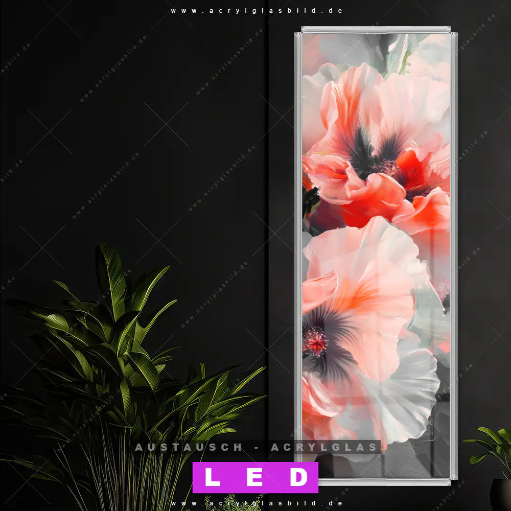 Begriffe wie Pflanze, Natur, Blüten, Mohnblumen, Klatschmohn, Blumen, Farbnebel, Farbwolke haben dich auf der Suche nach deinem neuen Austausch-Acrylglasbild inspiriert? Dann sollte das Wechsel-Acrylglasbild Blumen Schönheit für dein bereits vorhandenes LED Acrylglasbild Canvalight® DIA den Weg zu dir finden.