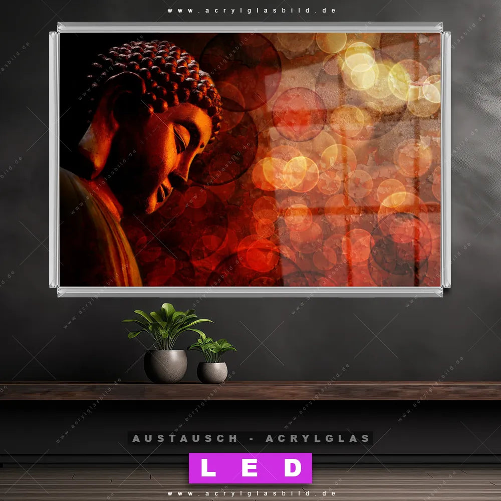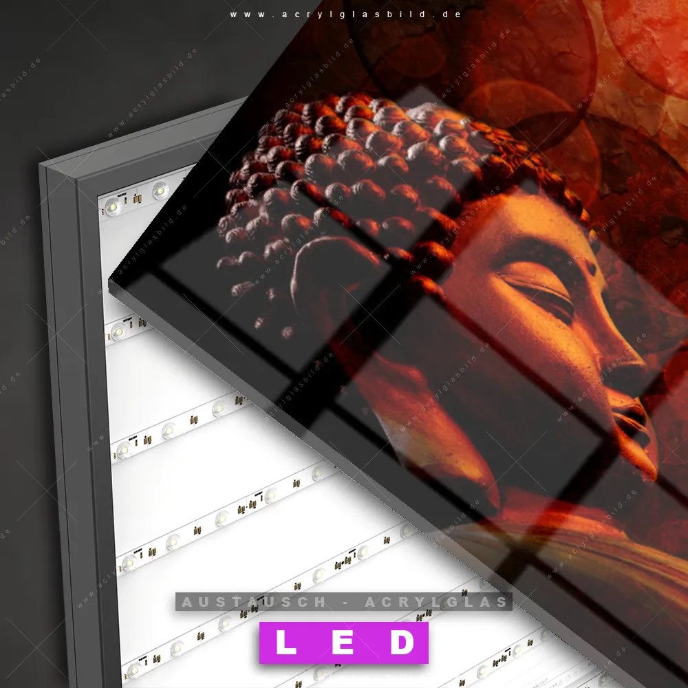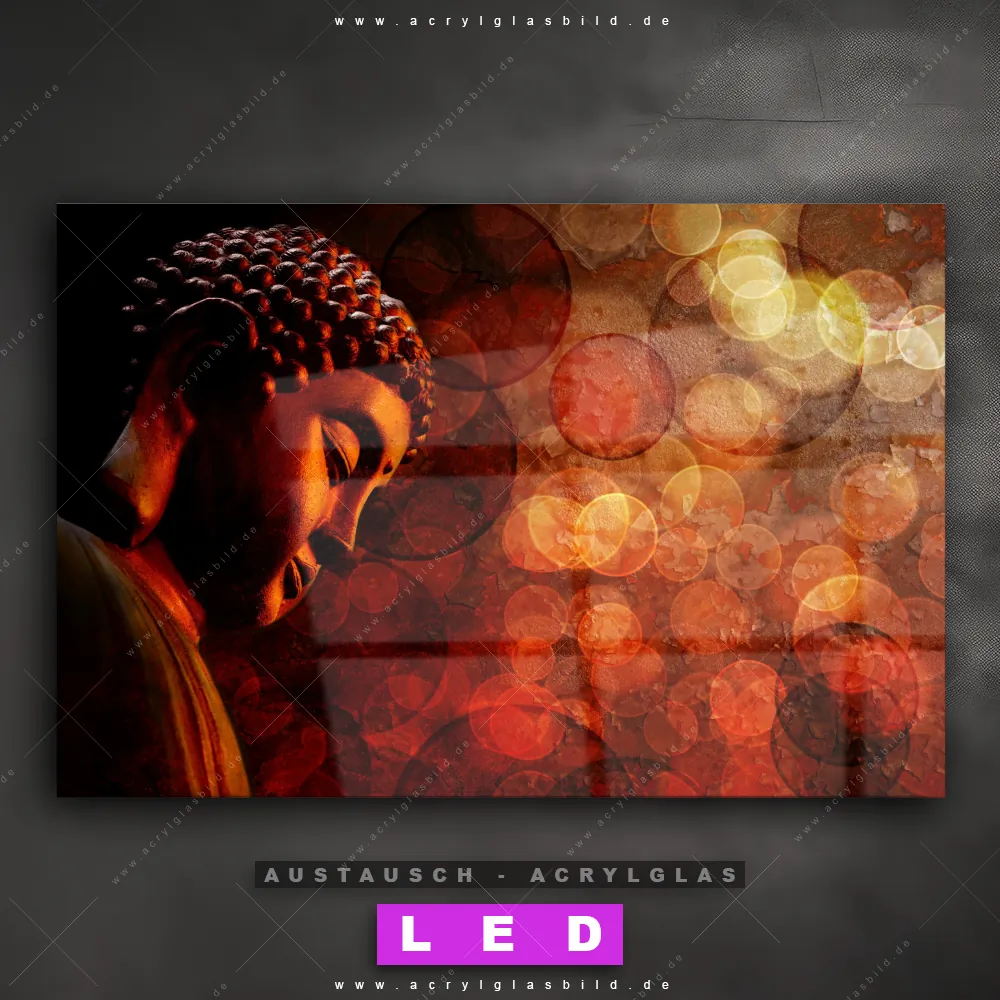 Begriffe wie Buddha, Buddhismus, Religion, Feng Shui, Zen, Meditation haben dich auf der Suche nach deinem neuen Austausch-Acrylglasbild inspiriert? Dann sollte das Wechsel-Acrylglasbild seitlicher Buddha für dein bereits vorhandenes LED Acrylglasbild Canvalight® DIA den Weg zu dir finden.