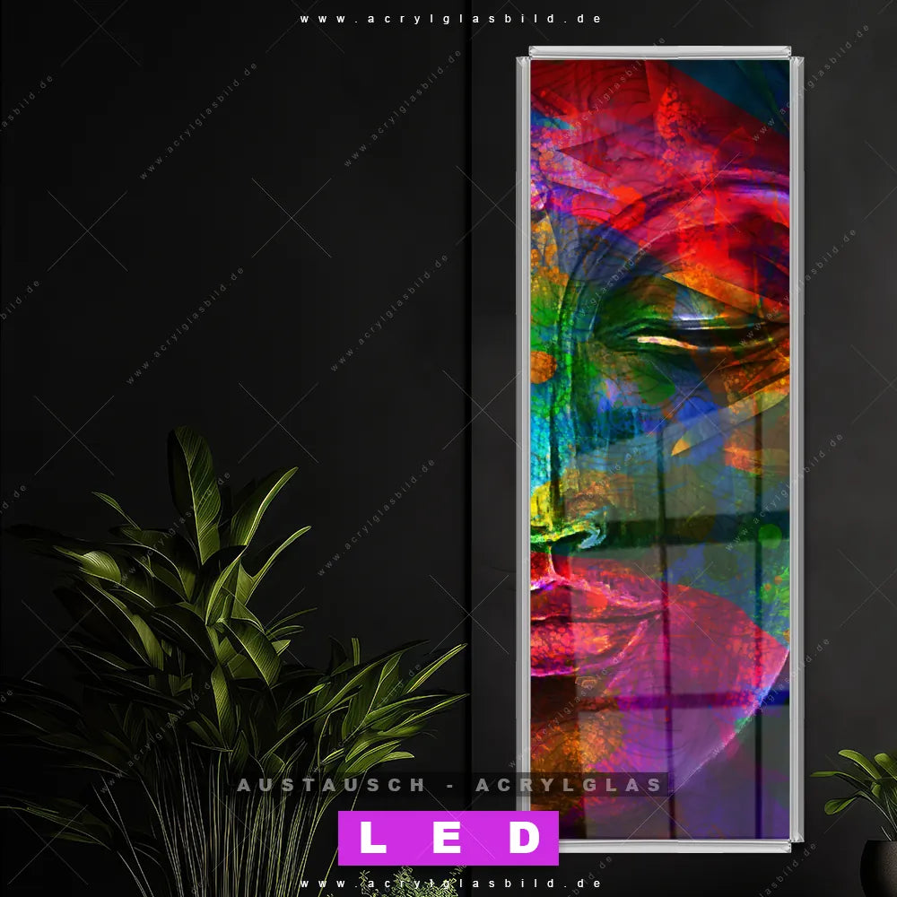 Wechsel-Acrylglas Canvalight® DIA | Bunter Buddha | Schmal