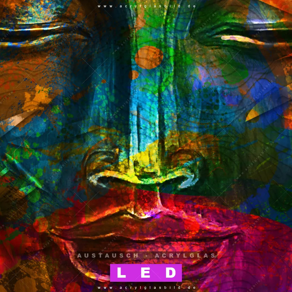 Begriffe wie Buddha, Buddhismus, Religion, Feng Shui, Zen, Meditation, Bambus haben dich auf der Suche nach deinem neuen Austausch-Acrylglasbild inspiriert? Dann sollte das Wechsel-Acrylglasbild farbenfroher Buddha für dein bereits vorhandenes LED Acrylglasbild Canvalight® DIA den Weg zu dir finden.