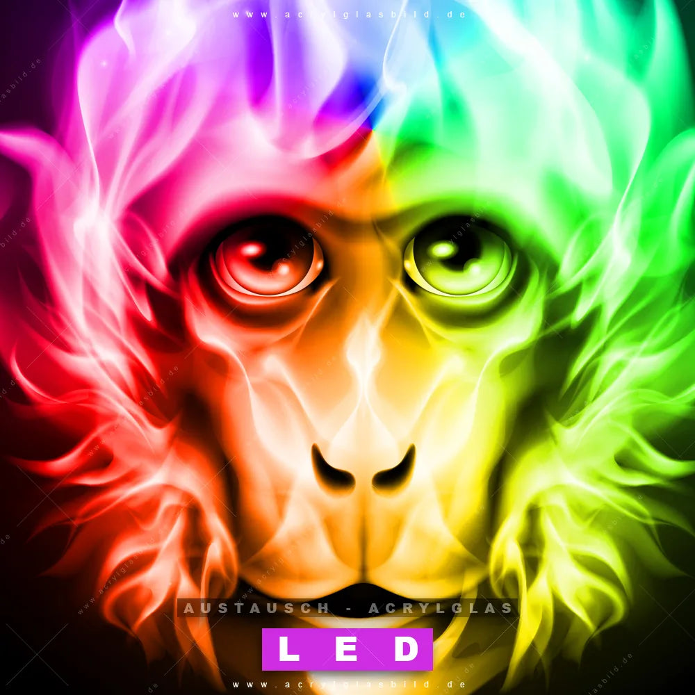 Begriffe wie Tier, Affe, Monkey, Feuer, Fire, Flammen haben dich auf der Suche nach deinem neuen Austausch-Acrylglasbild inspiriert? Dann sollte das Wechsel-Acrylglasbild Bunter Affe mit Flammen für dein bereits vorhandenes LED Acrylglasbild Canvalight® DIA den Weg zu dir finden.