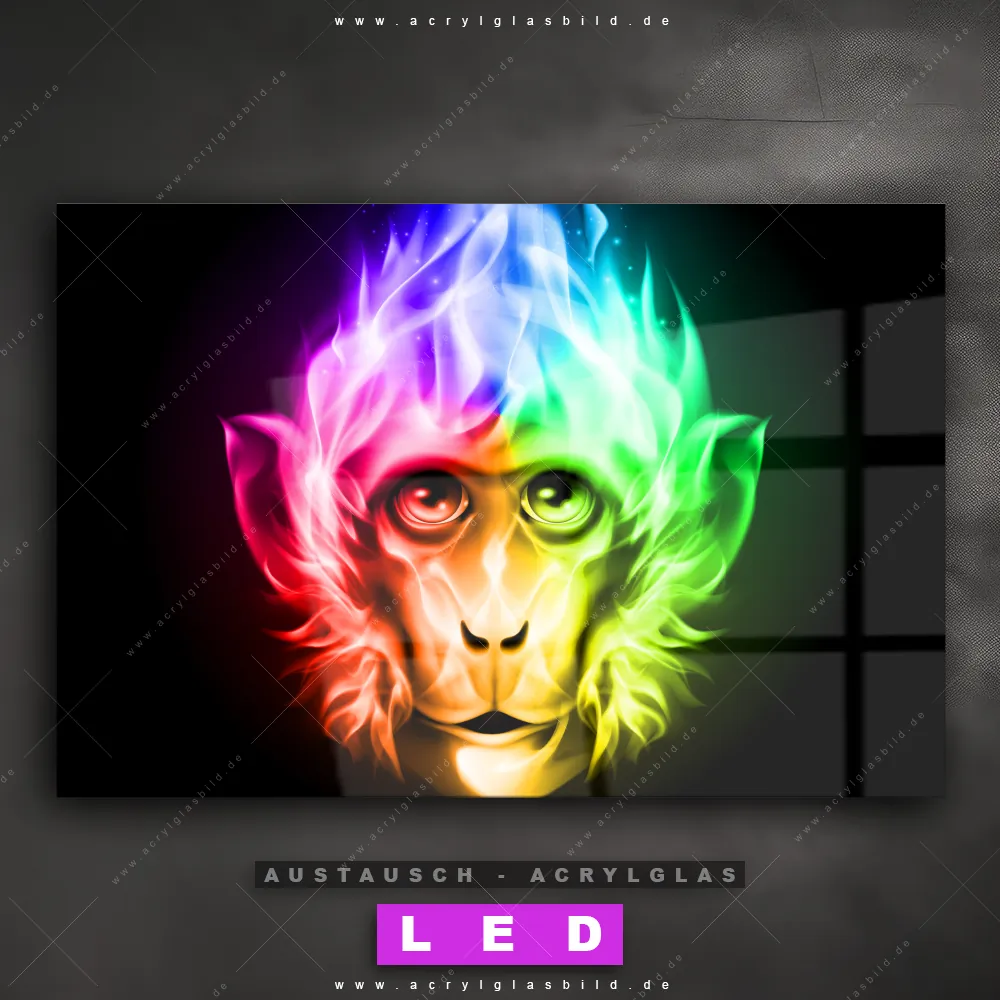 Begriffe wie Tier, Affe, Monkey, Feuer, Fire, Flammen haben dich auf der Suche nach deinem neuen Austausch-Acrylglasbild inspiriert? Dann sollte das Wechsel-Acrylglasbild Bunter Affe mit Flammen für dein bereits vorhandenes LED Acrylglasbild Canvalight® DIA den Weg zu dir finden.