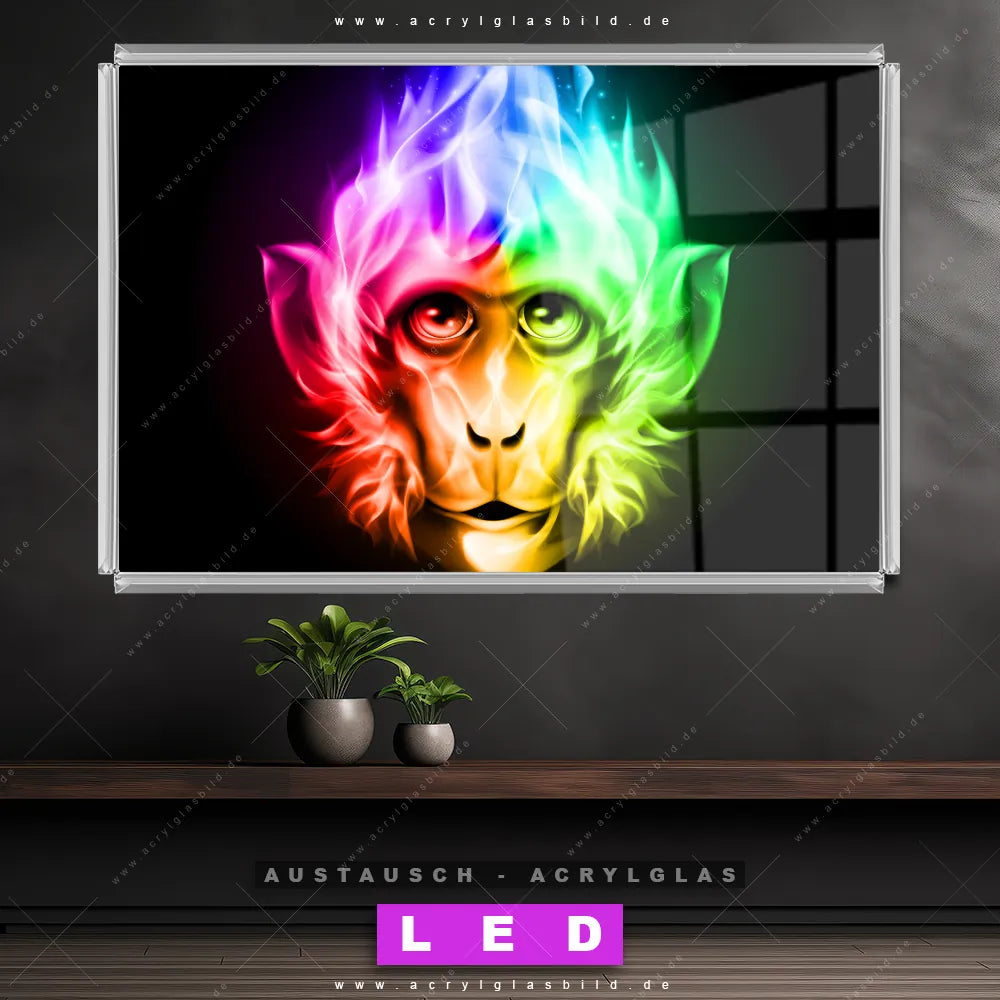 Wechsel-Acrylglas Canvalight® DIA | Bunter Feuer-Affe | Querformat