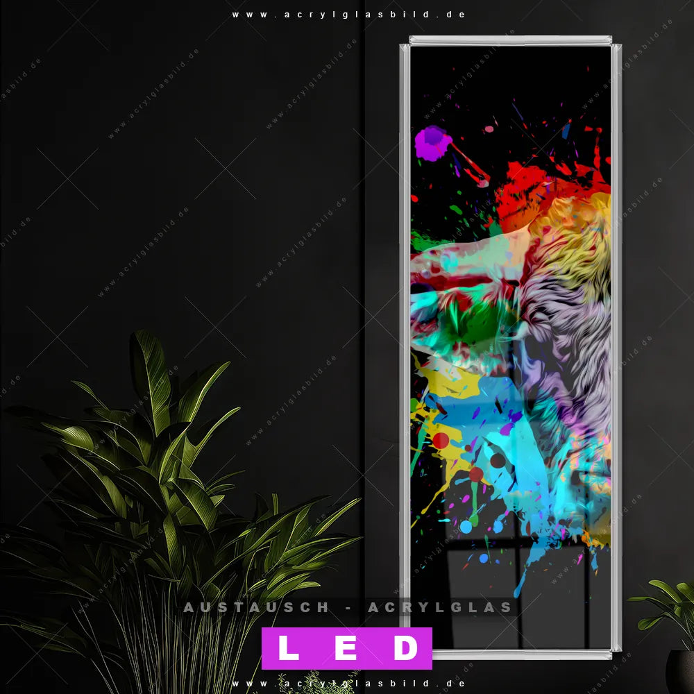 Begriffe wie Tier, Stier, Hochlandkuh, Highlander, Büffel, Splash, Farbspritzer, Rind haben dich auf der Suche nach deinem neuen Austausch-Acrylglasbild inspiriert? Dann sollte das Wechsel-Acrylglasbild Stierkopf bunt für dein bereits vorhandenes LED Acrylglasbild Canvalight® DIA den Weg zu dir finden.
