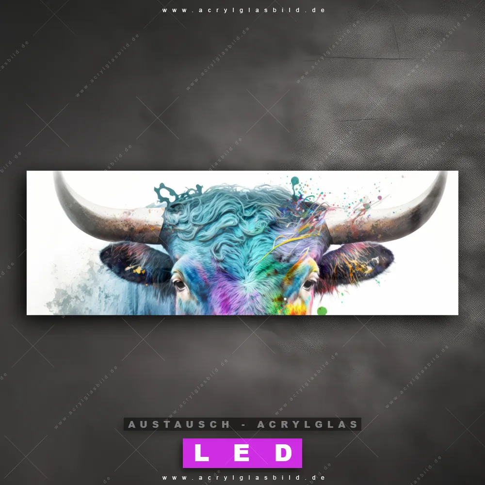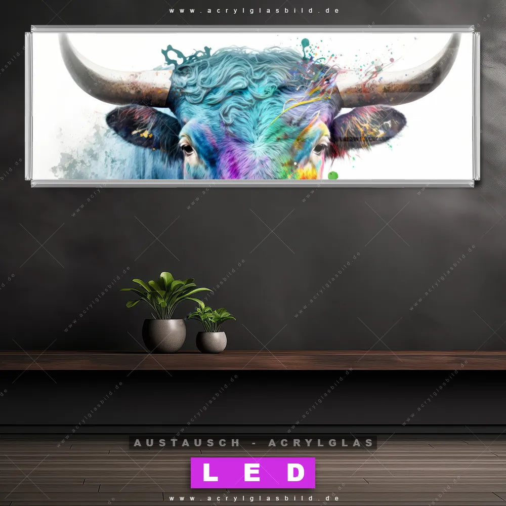 Wechsel-Acrylglas Canvalight® DIA | Bunter Stierkopf | Panorama