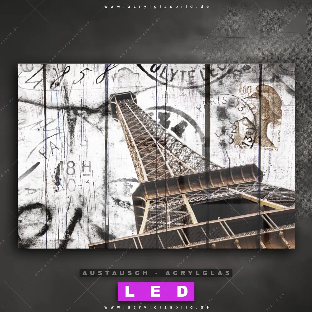 Begriffe wie Mixed Media, Sehenswürdigkeiten, Frankreich, Paris, Eifelturm, Holz haben dich auf der Suche nach deinem neuen Austausch-Acrylglasbild inspiriert? Dann sollte das Wechsel-Acrylglasbild La Tour Eiffel für dein bereits vorhandenes LED Acrylglasbild Canvalight® DIA den Weg zu dir finden.