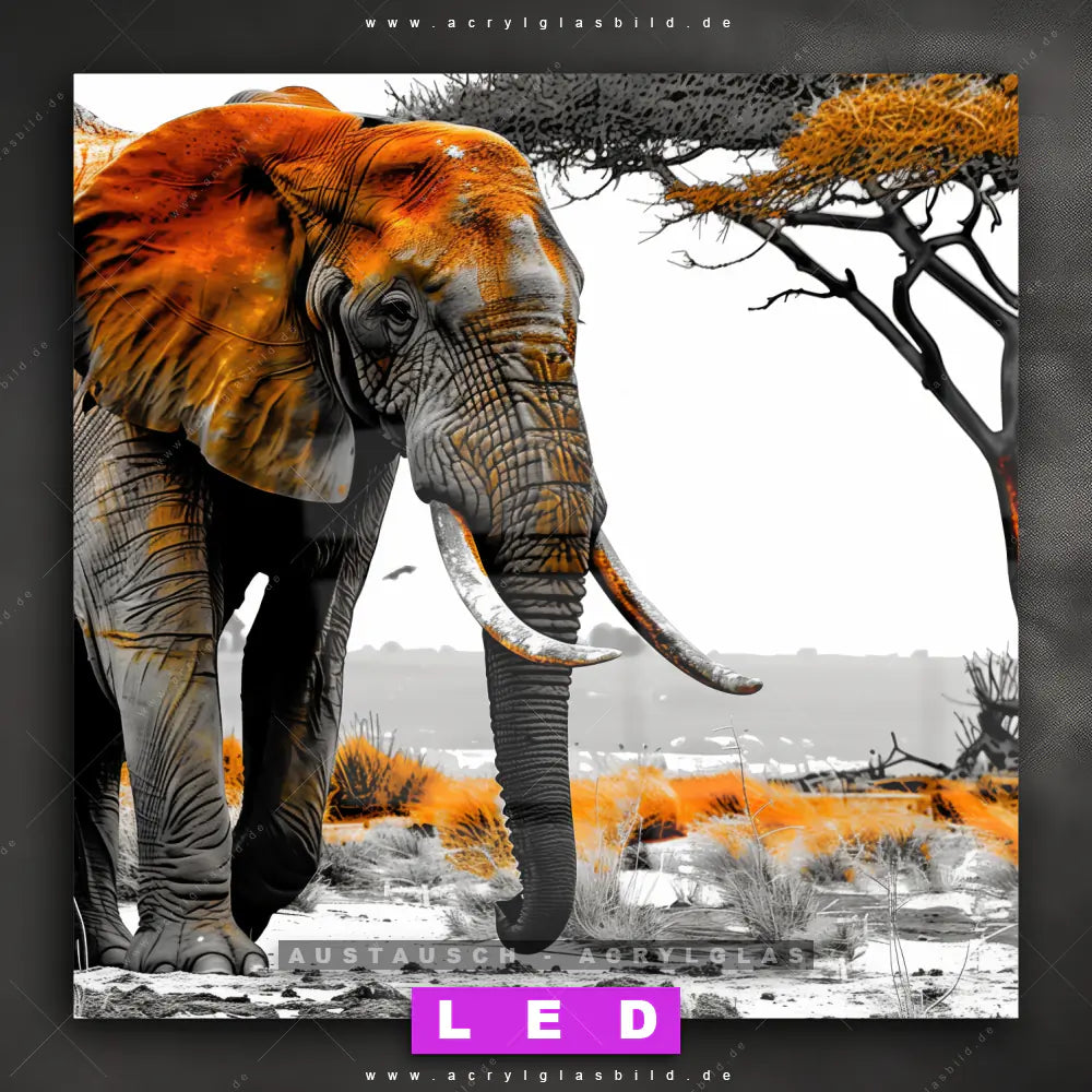 Begriffe wie Elefant, Afrika, wild, Safari, Savanne, Dickhäuter, Wüste, Stärke, Natur, Freiheit haben dich auf der Suche nach deinem neuen Austausch-Acrylglasbild inspiriert? Dann sollte das Wechsel-Acrylglasbild Majestätischer Elefant für dein bereits vorhandenes LED Acrylglasbild Canvalight® DIA den Weg zu dir finden.