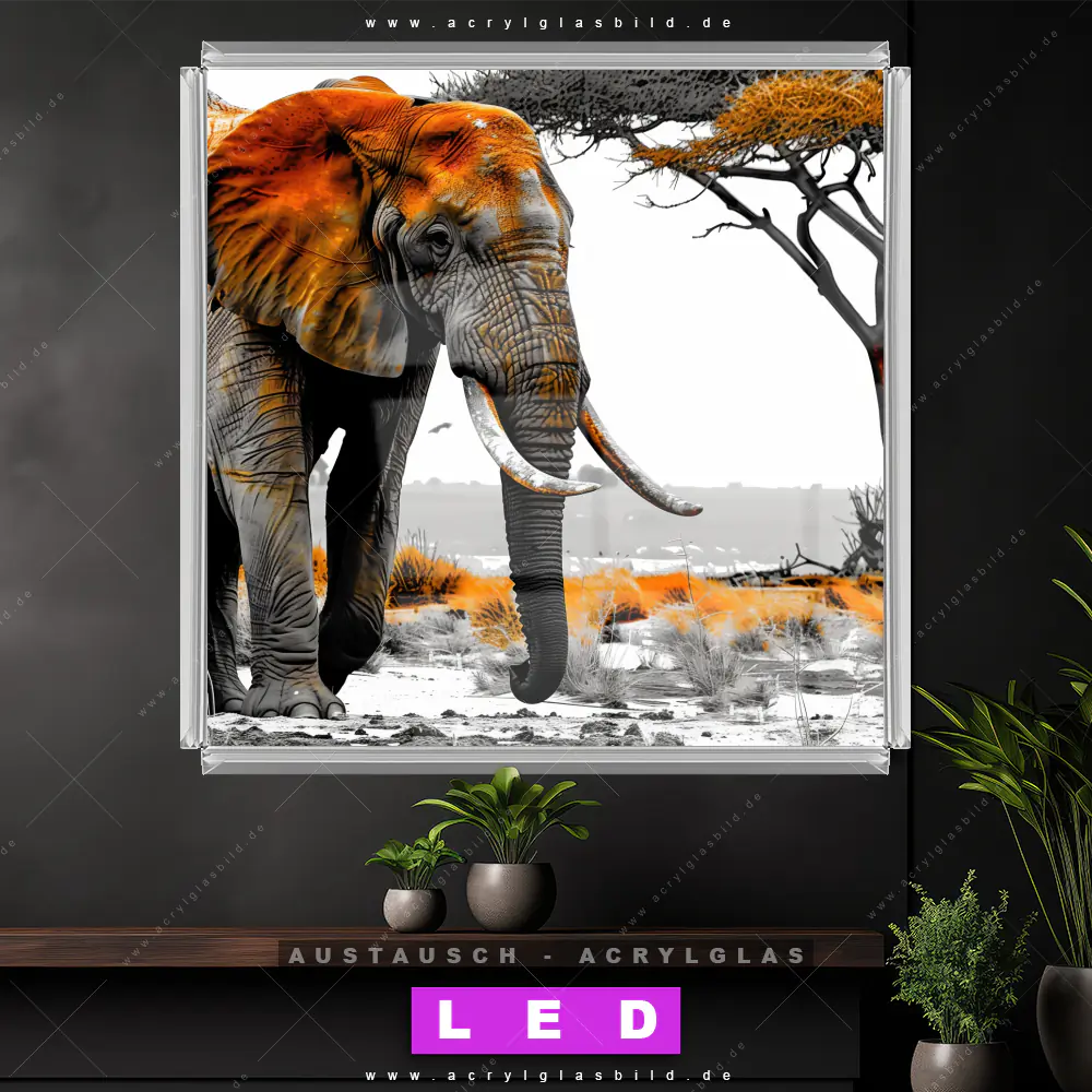 Wechsel-Acrylglas Canvalight® DIA | Elefant - Kraft der Wildnis | Quadrat