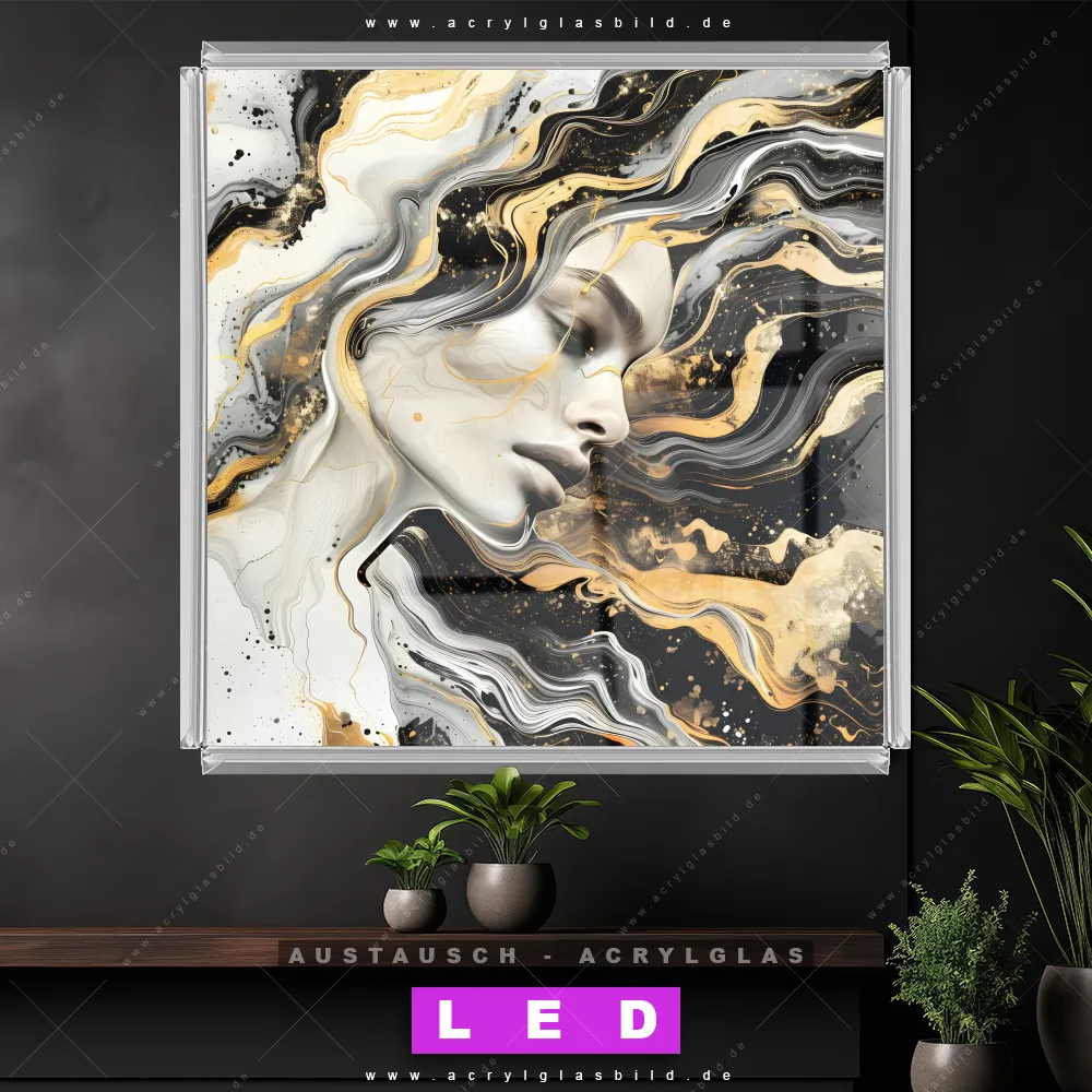 Wechsel-Acrylglas Canvalight® DIA | Elegantes gold-schwarzes Porträt | Quadrat