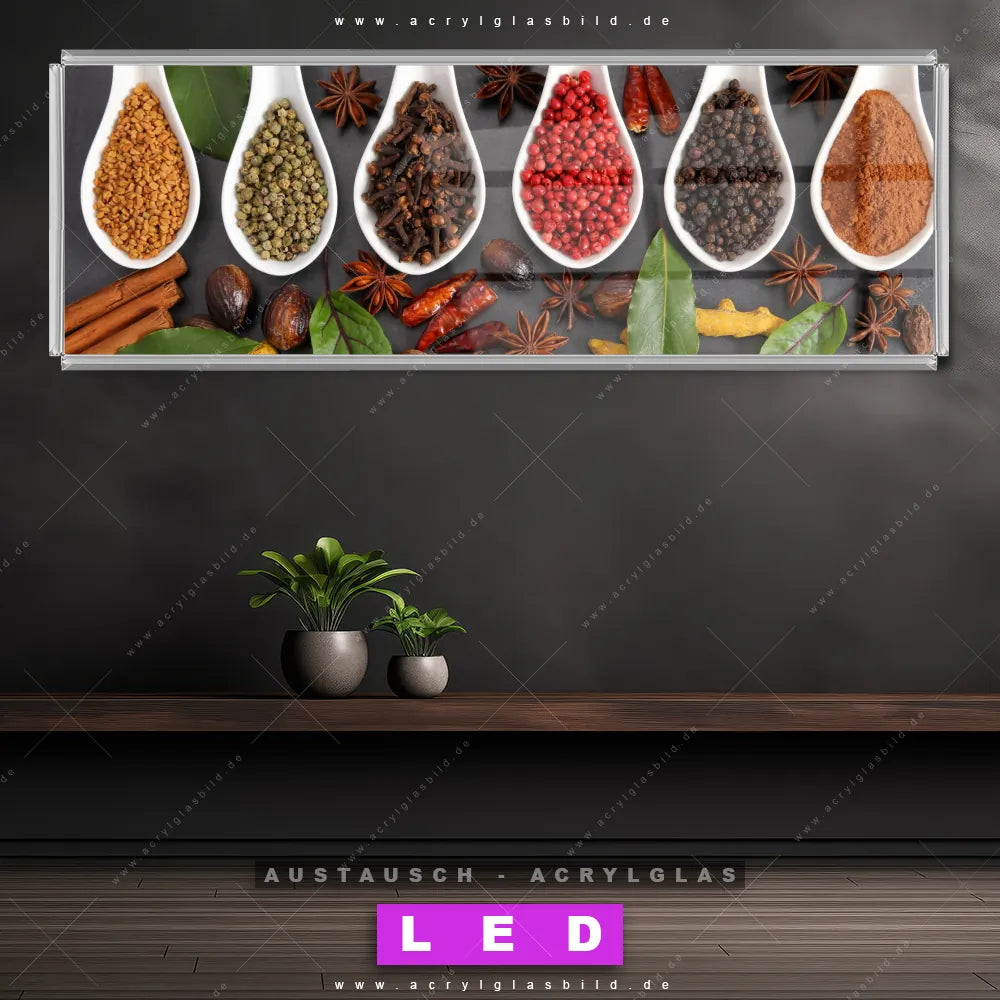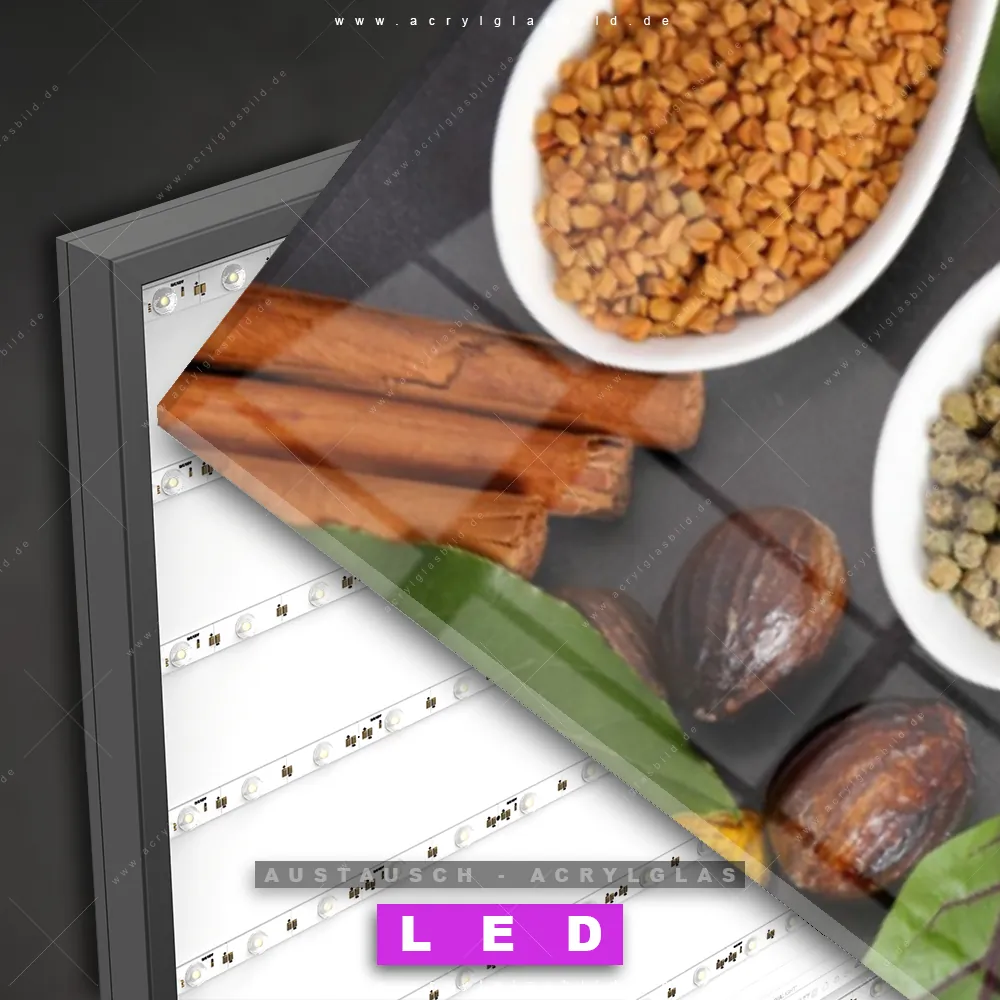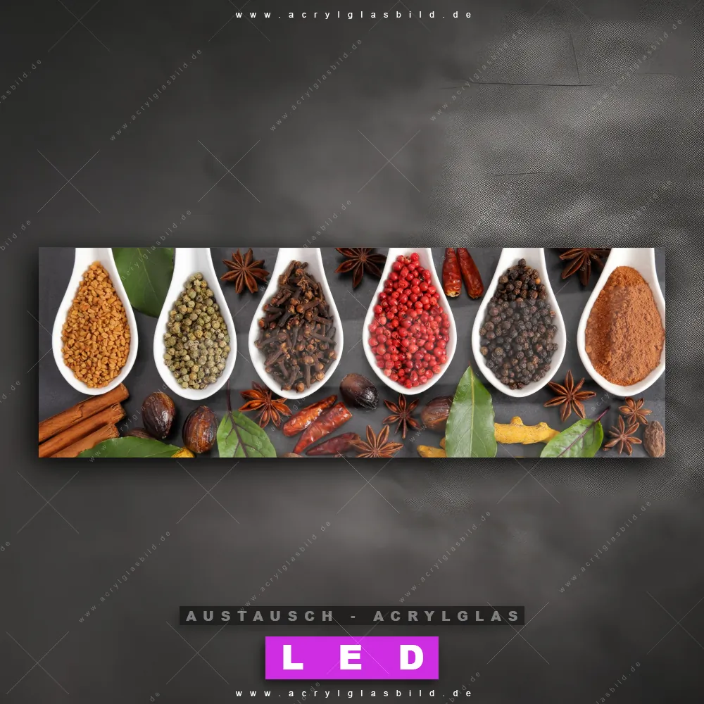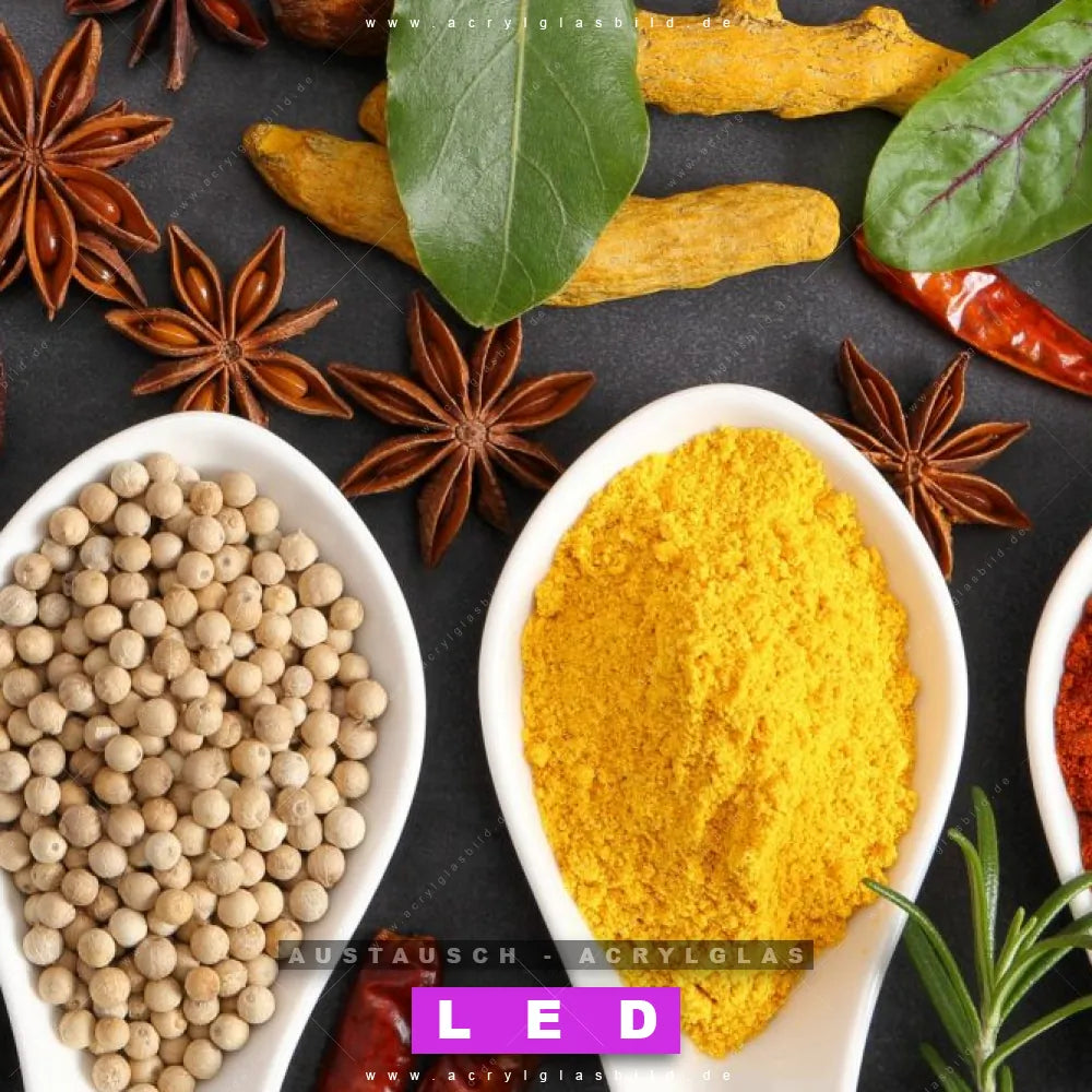 Begriffe wie Gewürze, Kräuter, Löffel, Besteck, Lebensmittel, Geschmack, Indien haben dich auf der Suche nach deinem neuen Austausch-Acrylglasbild inspiriert? Dann sollte das Wechsel-Acrylglasbild Löffel mit bunten Gewürzen für dein bereits vorhandenes LED Acrylglasbild Canvalight® DIA den Weg zu dir finden.