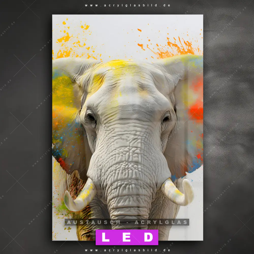 Wechsel-Acrylglas Canvalight® DIA | Farbenexplosion mit Elefant | Hochformat