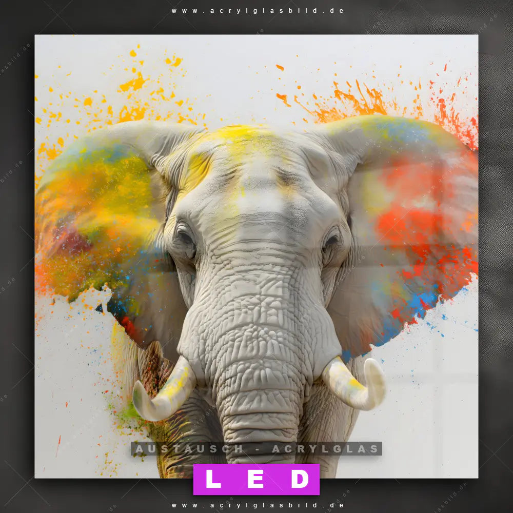 Wechsel-Acrylglas Canvalight® DIA | Farbenexplosion mit Elefant | Quadrat