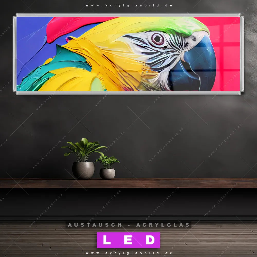 Wechsel-Acrylglas Canvalight® DIA | Federn Papagei | Panorama