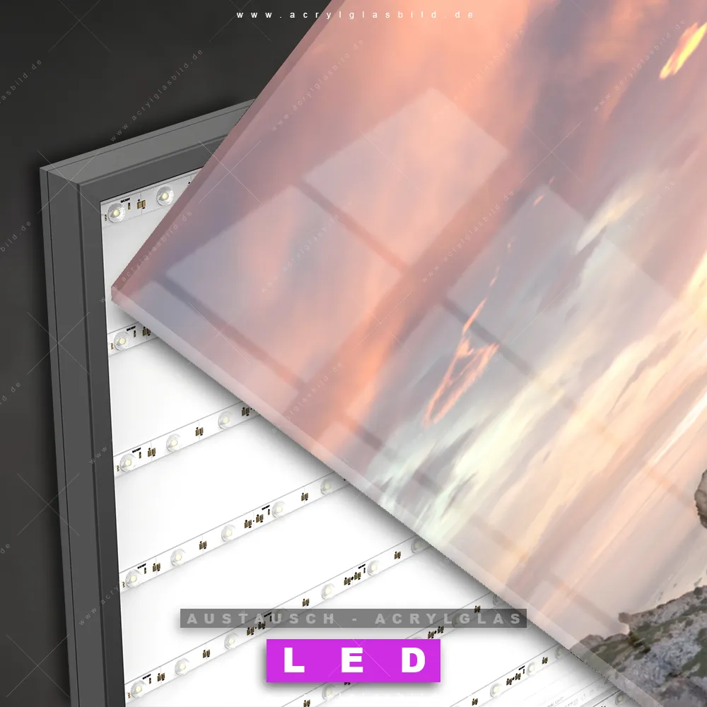 Begriffe wie Meer, Küste, Sonnenuntergang, Stein, Natur, Felsen, Sommer, Herbst haben dich auf der Suche nach deinem neuen Austausch-Acrylglasbild inspiriert? Dann sollte das Wechsel-Acrylglasbild Felsküste für dein bereits vorhandenes LED Acrylglasbild Canvalight® DIA den Weg zu dir finden.